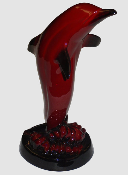 "The Leap" Royal Doulton Flambe Dolphin Figurine - Rare 9" Red Glaze