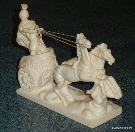A. Santini Alabaster Sculpture - Gladiator Chariot & Horses (Made in Italy)