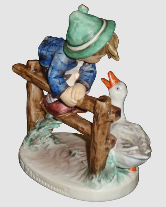 "Barnyard Hero" Goebel Hummel Figurine #195/I - Boy On Fence With Duck!