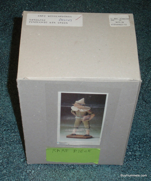 Anri 6" Wooden Pinocchio Figurine In Green Signed With Original Box - ULTRA RARE GIFT!