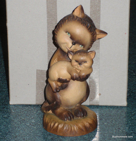 Tender Moments 6" Anri Ferrandiz Carved Wood Cat & Kitten Figurine Signed With Box!