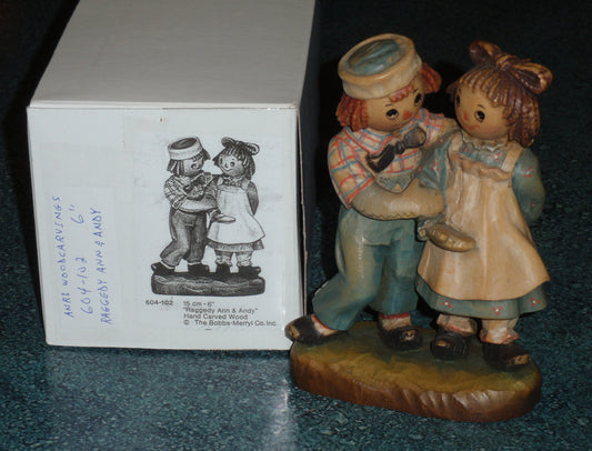 1976 Anri Italy Raggedy Ann & Andy Wood Carved Figurine Bobbs Merrill Signed With Box!