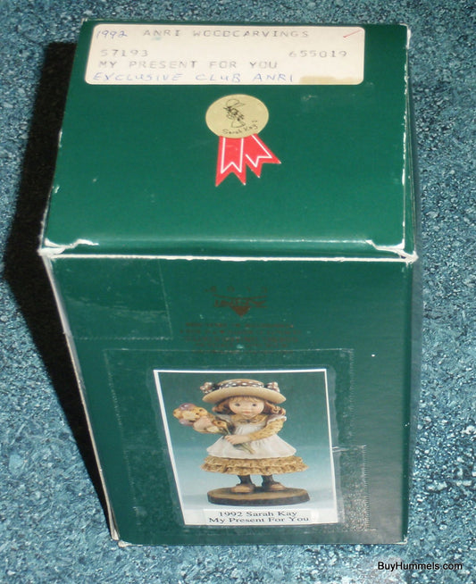 ANRI 4" Wood Carving Sarah Kay “My Present for You” Figurine With Original Box - Little Girl With Bouquet!