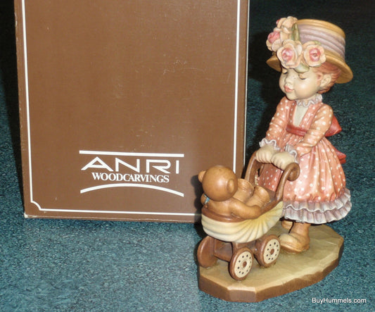 6" ANRI ITALY Sarah Kay Figurine "Little Nanny" Girl With Teddy Bear In Stroller - CUTE GIFT!