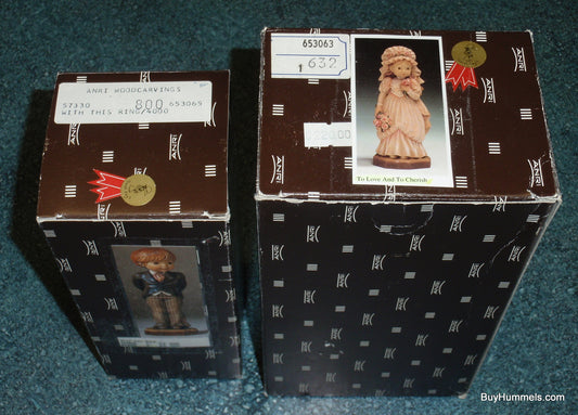 Anri 6” Bride Groom Wood Carving Figurines "With this Ring" & "To Love and Cherish" - Fantastic Collectible Wedding Gift From Italy!