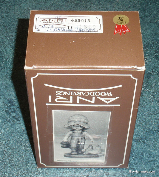 ANRI "Morning Chores" 6" Figurine By Sarah Kay With Original Box - Little Boy With BIG Hat Feeding Chickens - Cute Collectible Italian Gift!