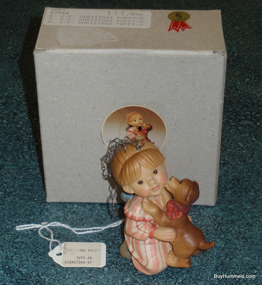 "Christmas Puppy" Anri Sarah Kay Wood Carved Christmas Ornament Figurine With Original Box!
