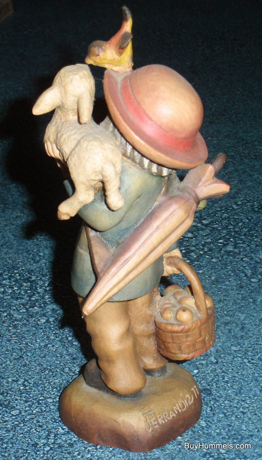 "Leading The Way" Anri Italy Wood Carving Ferrandiz 6" Tall Shepherd With Lamb!