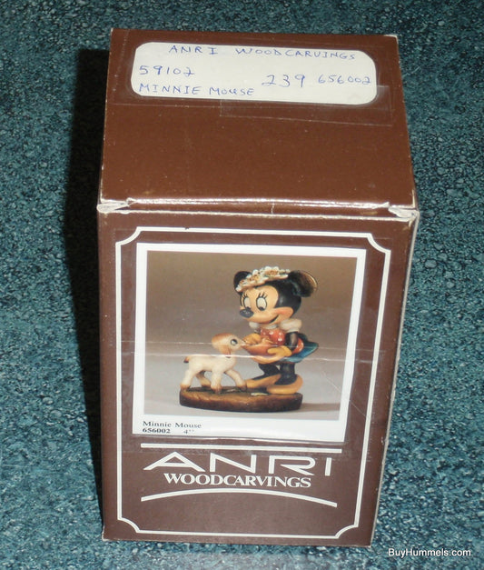 Anri Disney MINNIE MOUSE Feeding Lamb Wood Carved 4" Figure Signed With Original Box - Rare Disneyana Collectible Gift!