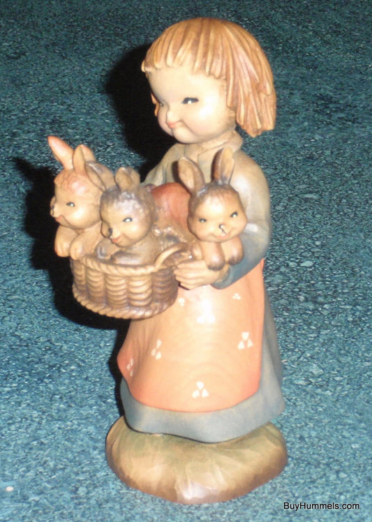 6" Anri Ferrandiz Hand Carved Wood "Basket of Joy" Girl With Bunnies Italy