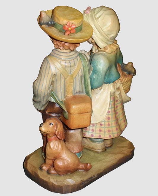 Anri Juan Ferrandiz SPRINGTIME STROLL With Box - Little Boy & Girl Holding Hands With Puppy By Their Side RARE Limited Edition Wood Carving!