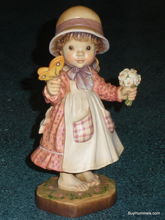 7" Anri Sarah Kay Summer Beauty Girl Signed With Original Box - Little Girl With Bouquet And Butterfly!
