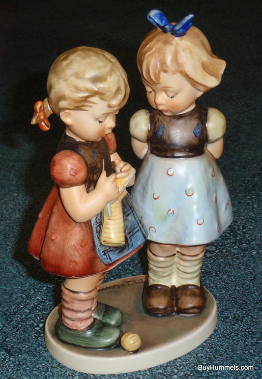 "Knitting Lesson" Goebel Hummel Figurine #256 - Two Girls Learning To Knit