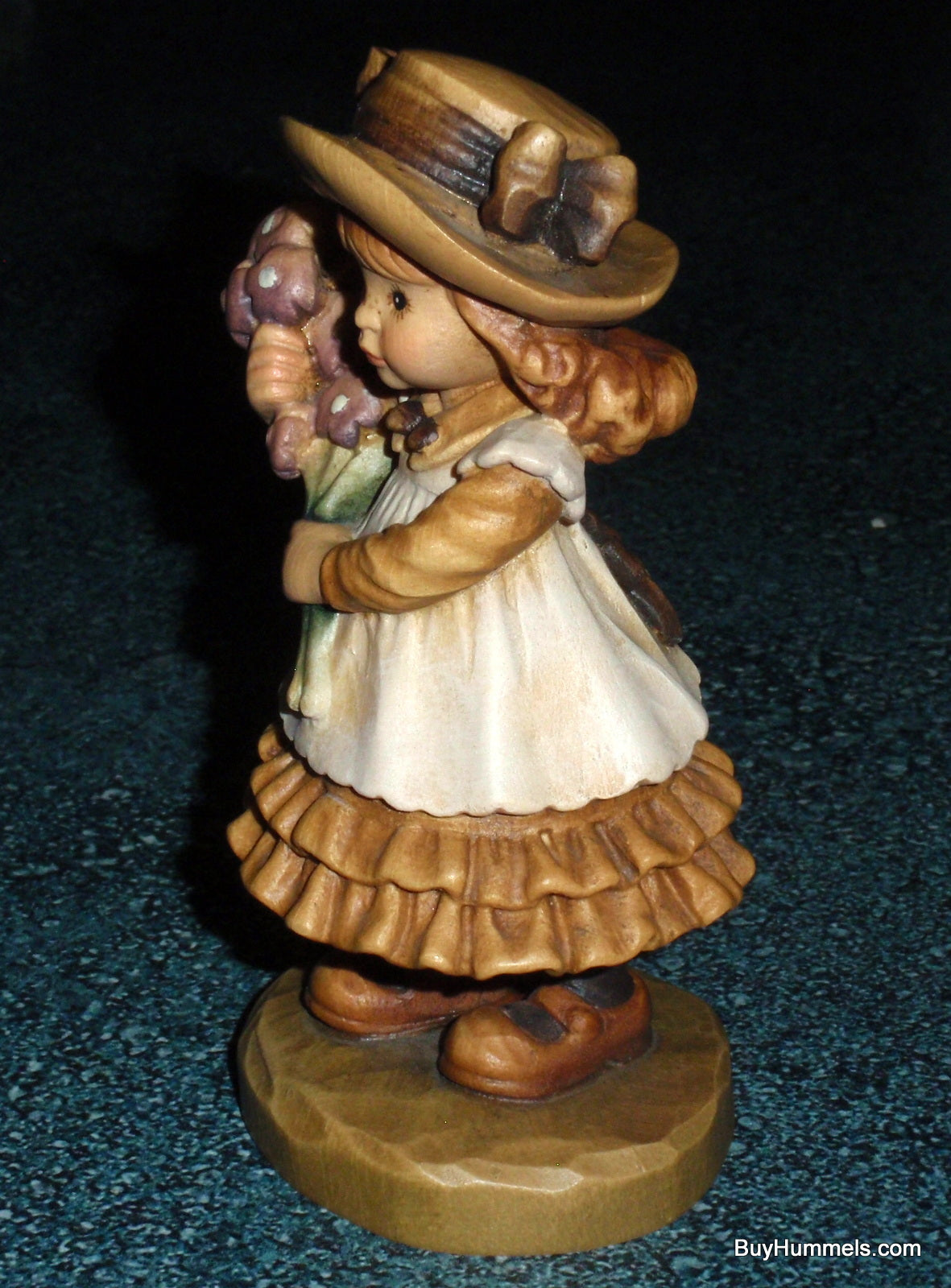 ANRI 4" Wood Carving Sarah Kay “My Present for You” Figurine With Original Box - Little Girl With Bouquet!