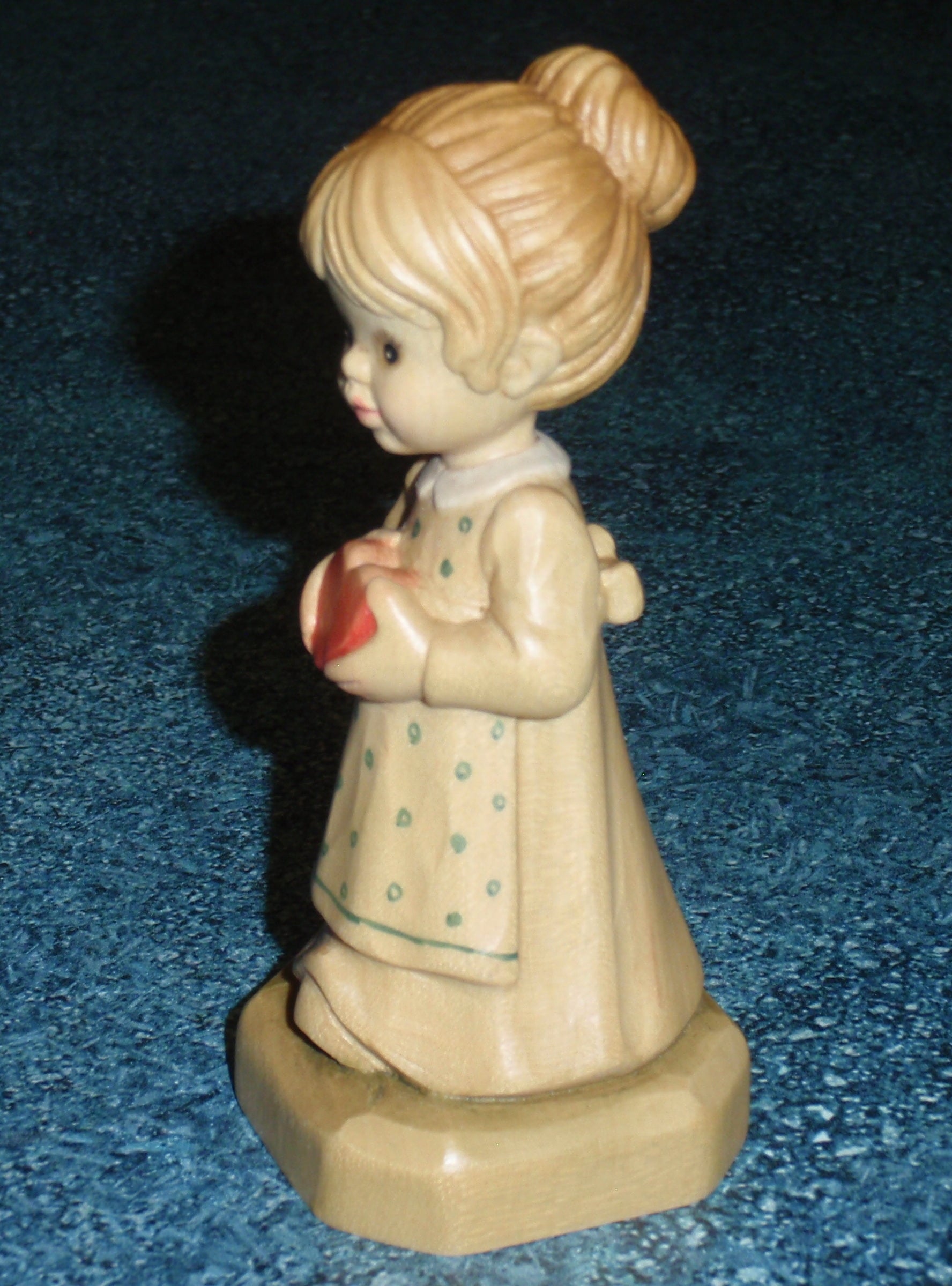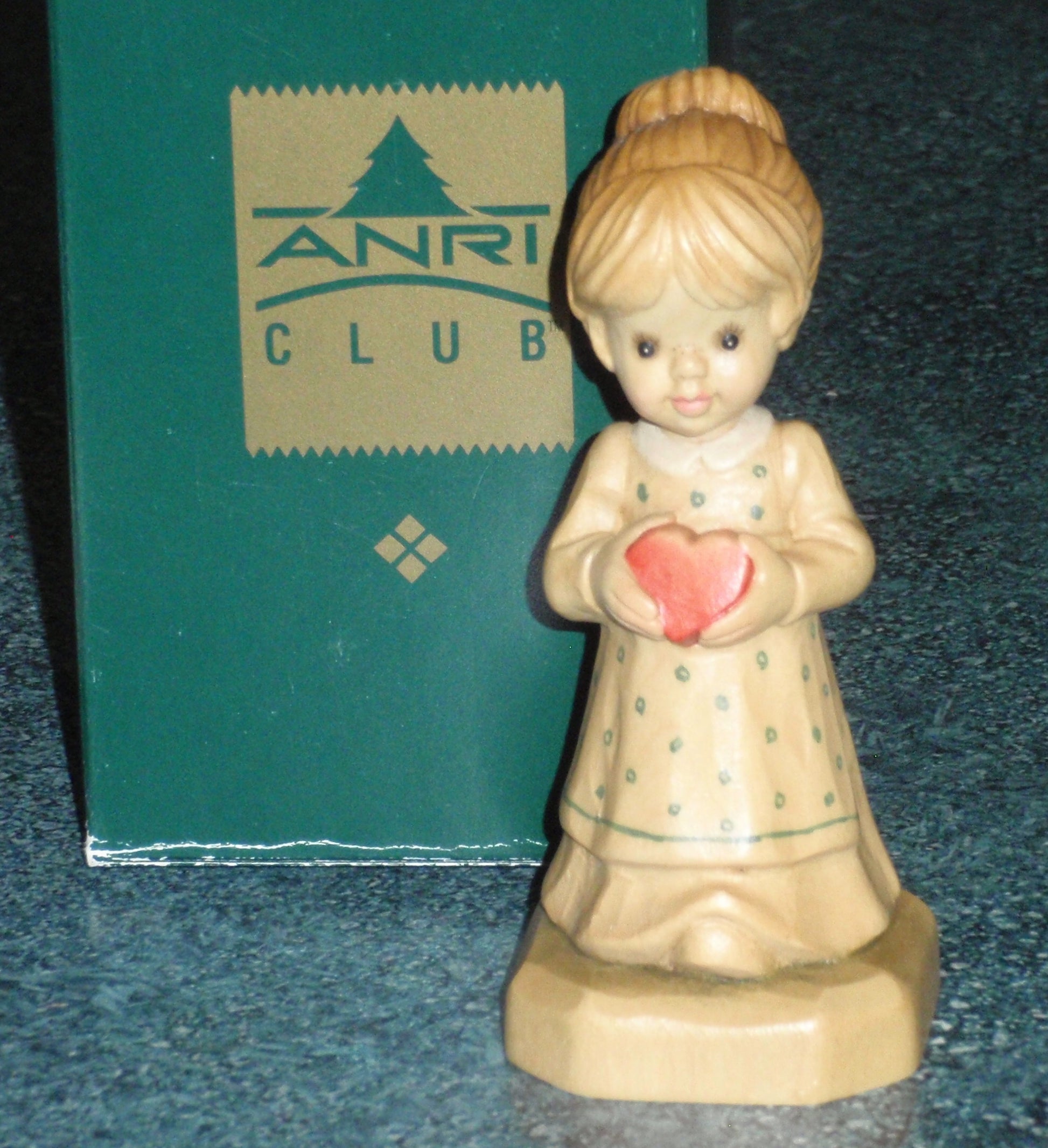 Anri Club Sarah Kay Valentine "Gift Of Love" Wood Carving Figurine Signed by Ulrich Bernardi With Box From Italy - Little Girl With Heart!