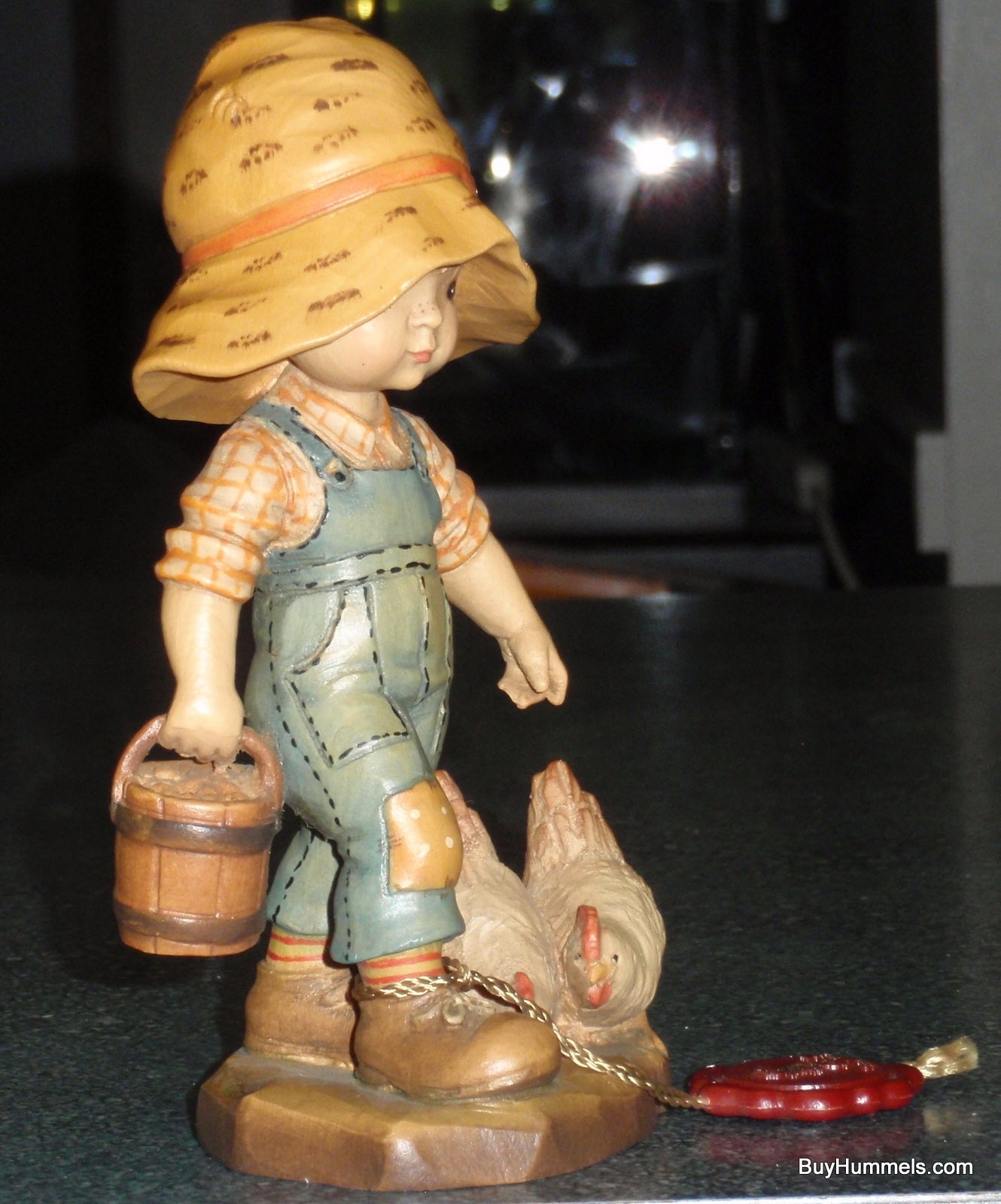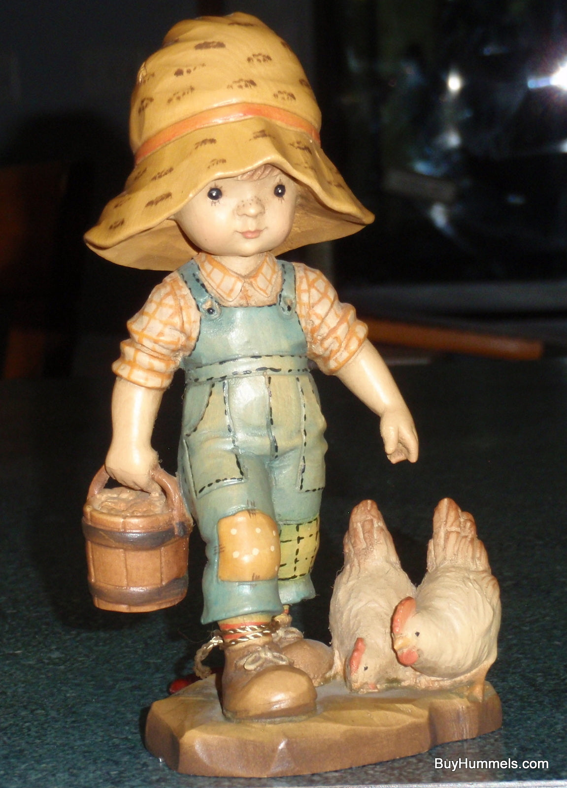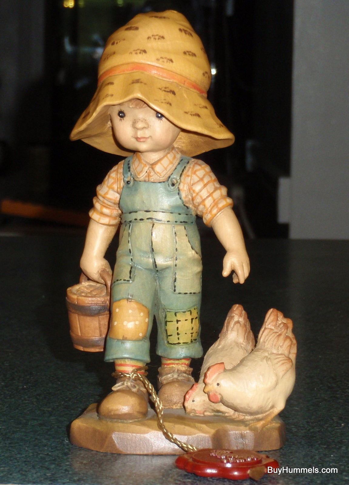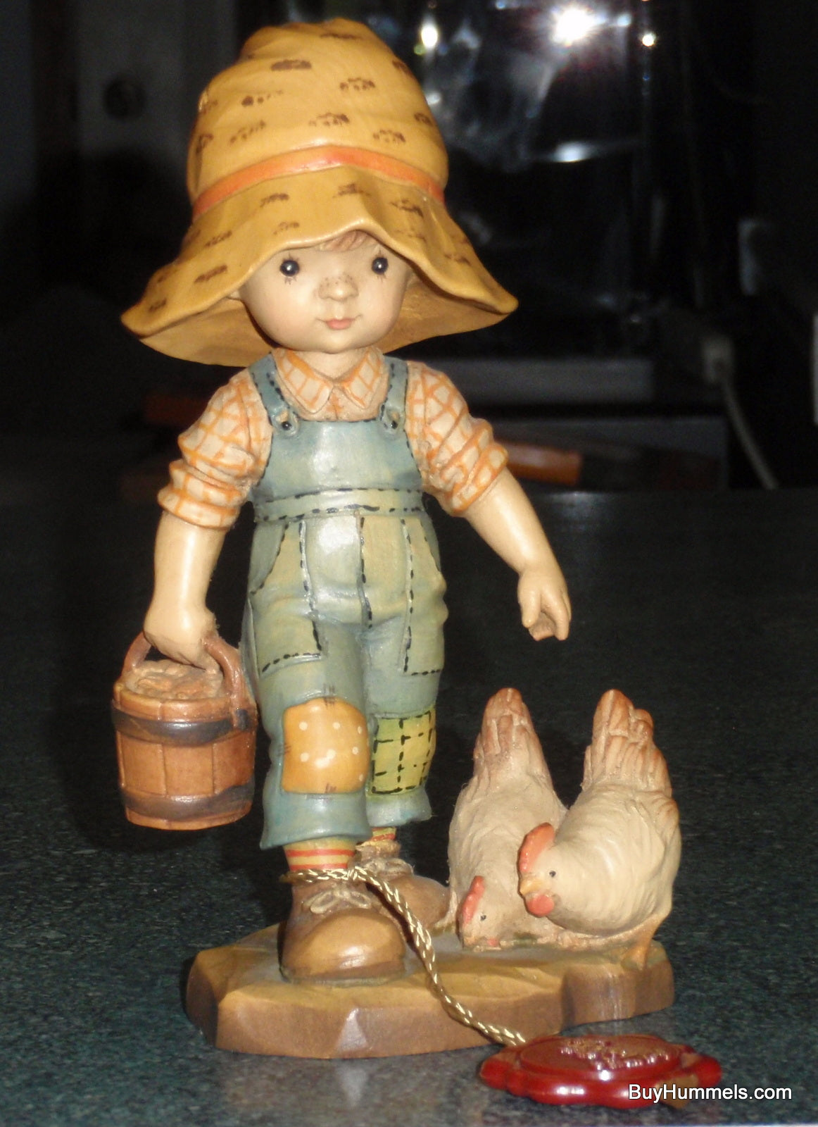 ANRI "Morning Chores" 6" Figurine By Sarah Kay With Original Box - Little Boy With BIG Hat Feeding Chickens - Cute Collectible Italian Gift!