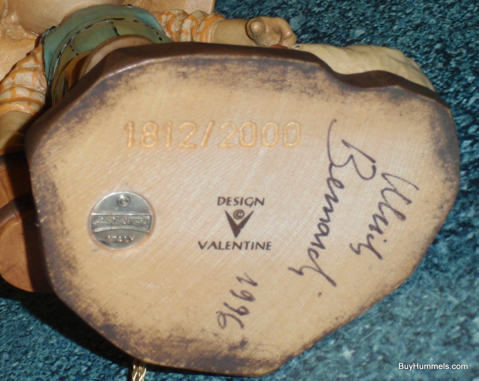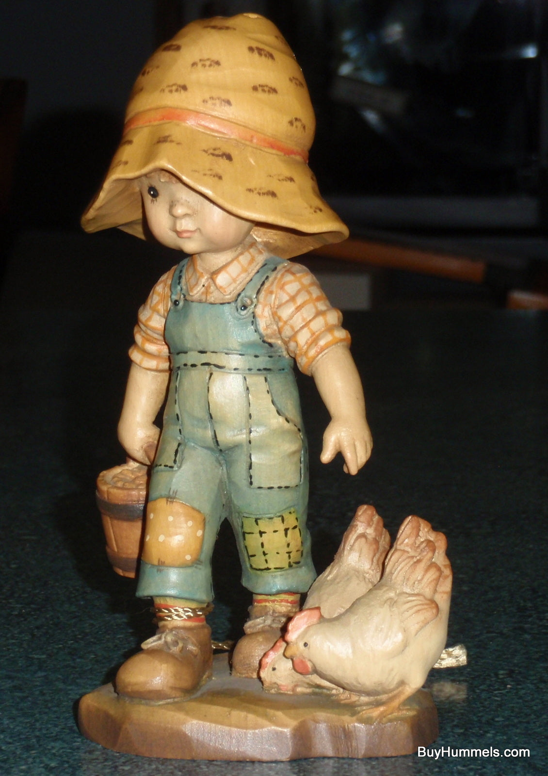 Bring a touch of heartwarming nostalgia to your home with this adorable 6" ANRI figurine, "Morning Chores." Depicting a young boy diligently feeding his chickens, his oversized sun hat adding a delightful touch of whimsy, this piece captures the simple joys of rural life. Crafted with exceptional detail and in amazing condition, this figurine is a perfect gift or addition to your own collection. It includes its original box and is a testament to the quality and artistry of ANRI. Adding to its rarity and value, this figurine is hand-signed on the bottom by the renowned wood carver, Ulrich Bernardi. You'll love the intricate details of this charming scene! Approximately 6.5" tall.