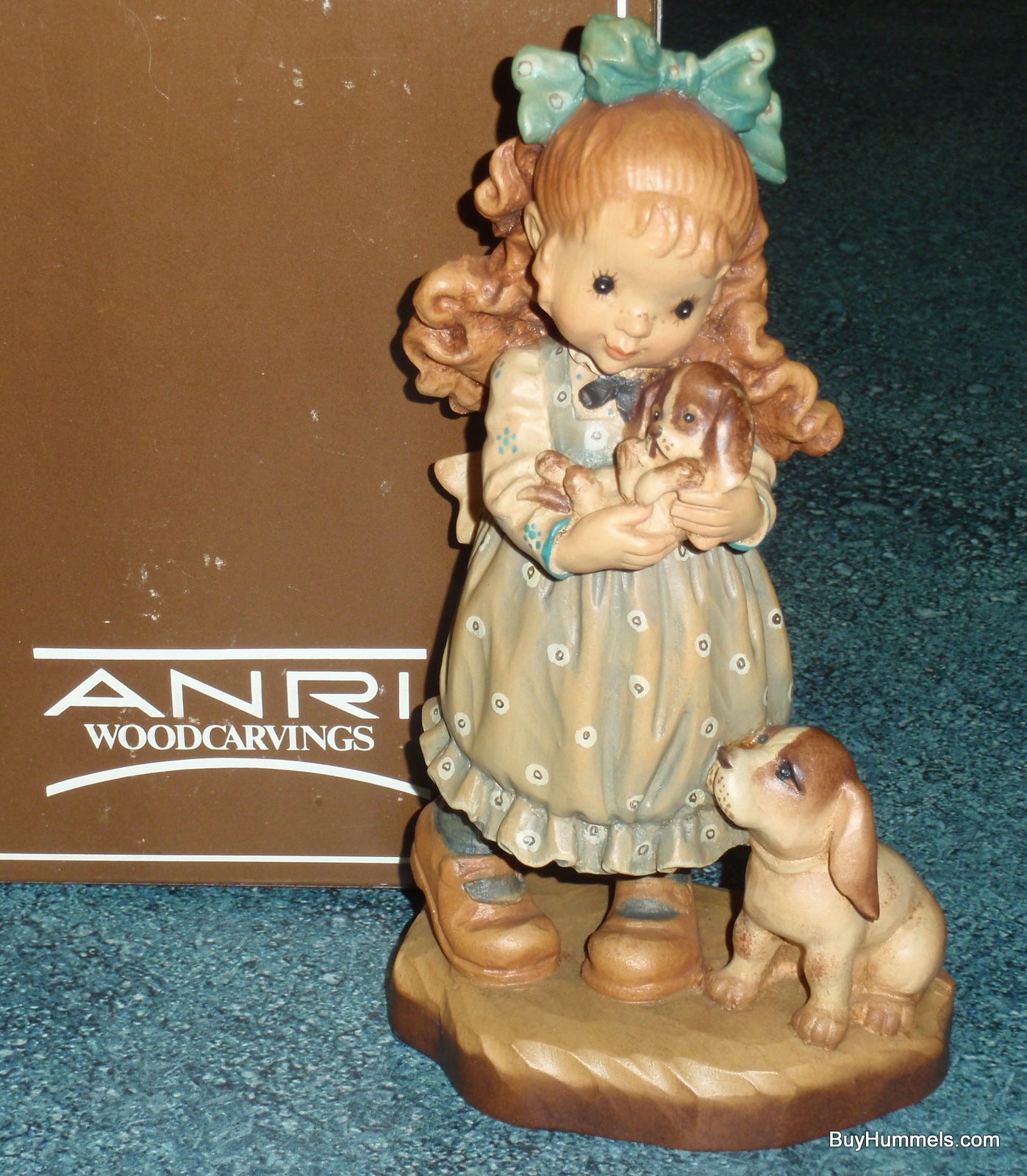 Anri Sarah Kay VALENTINE "Our Puppy" Figurine 7-1/2" With Original Box - Little Girl With Puppies - Adorable Gift!