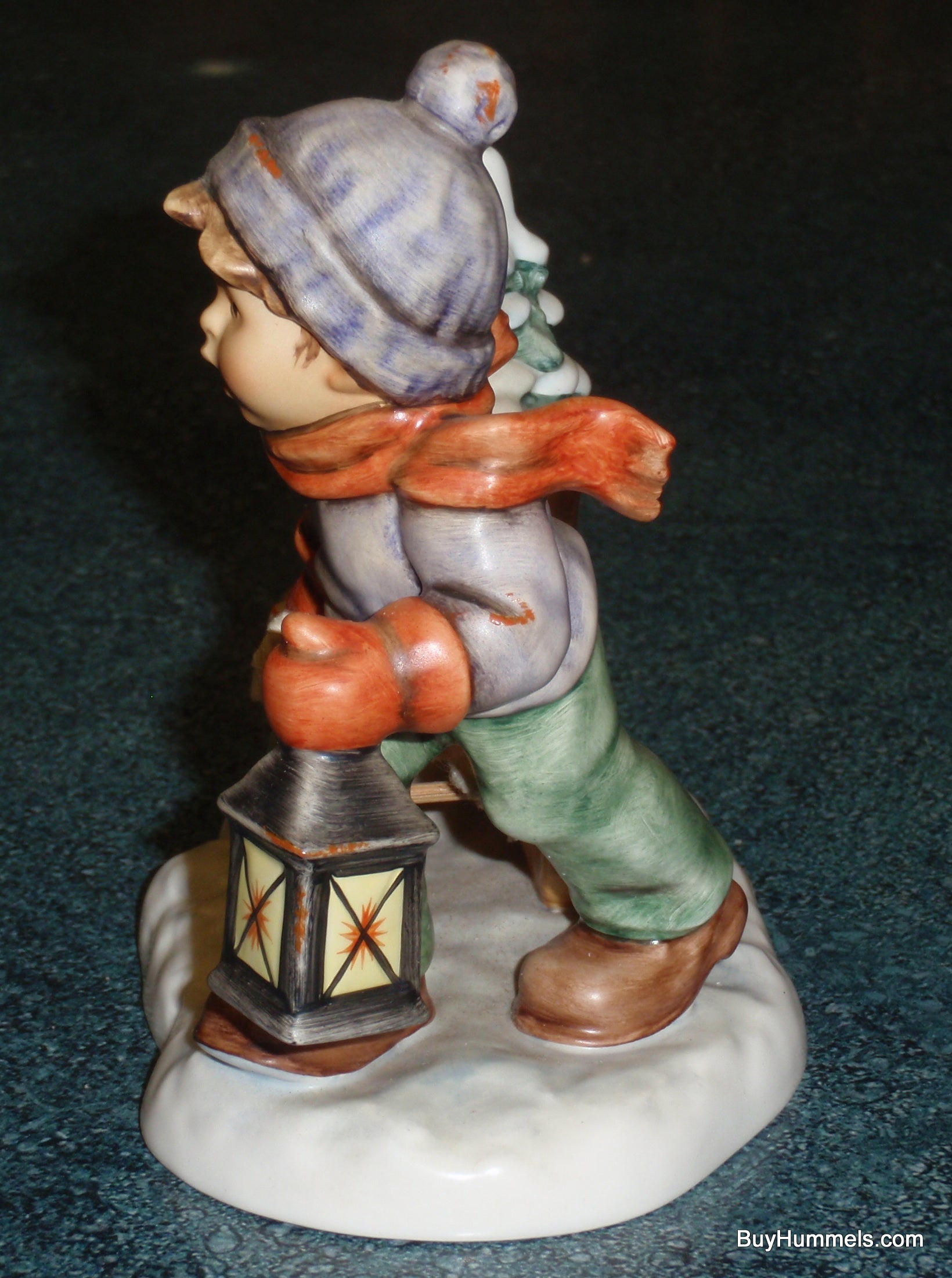The next Hummel from our collection is this "Christmas Is Coming" Goebel Figurine #2001. This figurine is quite large measuring 5-1/4" tall x 5-1/2" wide. It features a young child all bundled up with his sled and a lantern with a snow-covered Christmas Tree on the back. Super cute! As you can see in the pictures it is in EXCELLENT condition with no chips, cracks, or repairs!! Still displays beautifully with nice and vibrant colors!! Identified on the bottom as Hummel #2001.