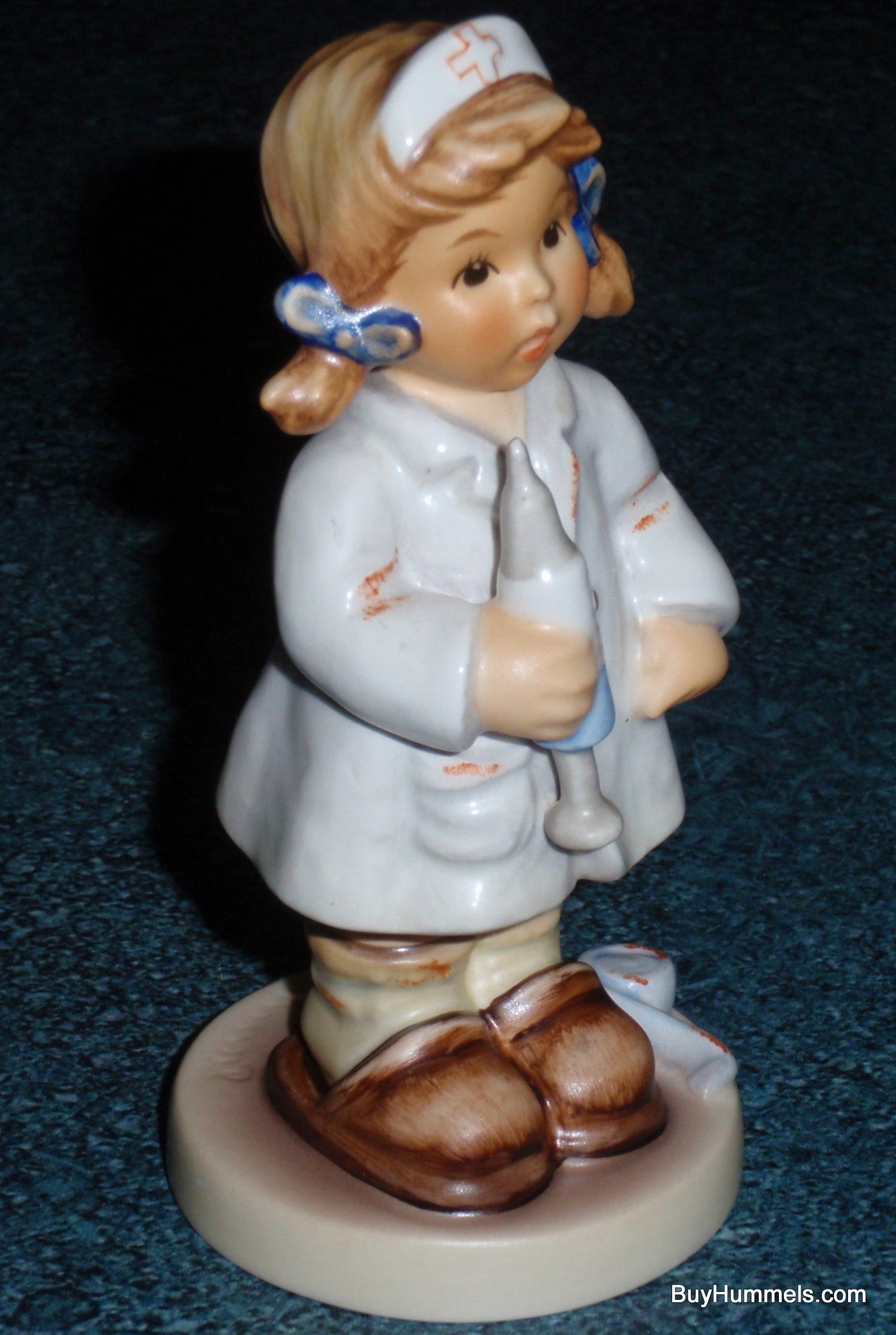 Honor the healing profession with the heart-stirring "Comfort And Care" figurine (#2075). This endearing Goebel Hummel features a diligent young girl dressed as a nurse, prepared with her supplies to tend to a patient. Originally modeled by master sculptor Helmut Fischer in 1999, this piece is a beautiful tribute to the compassion and dedication of healthcare workers, rendered in the iconic M.I. Hummel style.