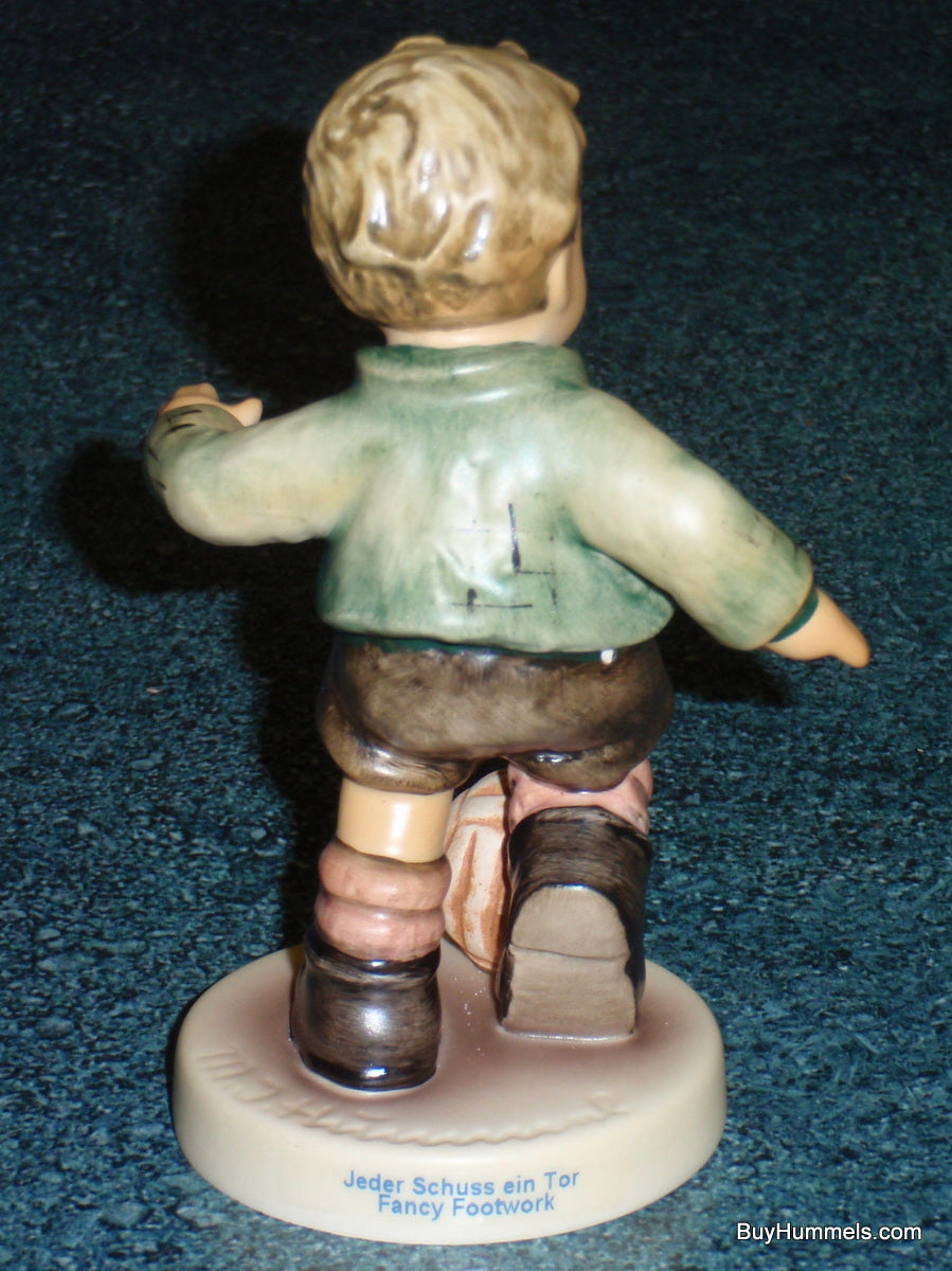 Up for sale is this RARE Goebel Hummel figurine entitled "Fancy Footwork"!! This Hummel collectible features a little boy practicing his moves with the soccer ball. Super cute!!! This figurine stands about 4-1/4 tall and is identified as #2211! As you can see in the pictures it is in EXCELLENT condition with no chips, cracks, or repairs. Displays beautifully with nice and vibrant colors!! This Fancy Footwork Hummel would make a great display piece or addition to any Goebel Hummel collection!