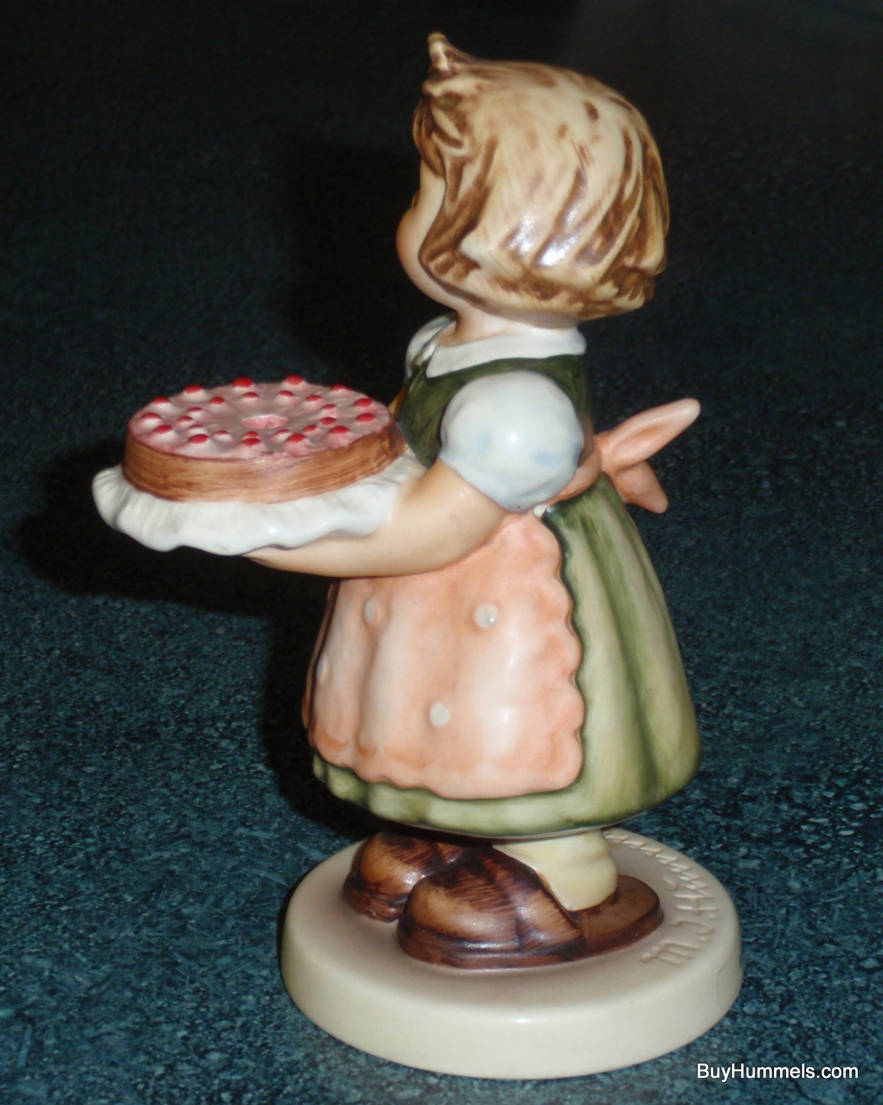 This delightful Hummel figurine showcases a sweet little girl holding a birthday cake. The cake even features a special spot to insert a birthday candle (not included)! Measuring approximately 5.5 inches tall, this collectible piece is identified as #440 and bears the TMK 6 trademark, indicating its production in 1983.