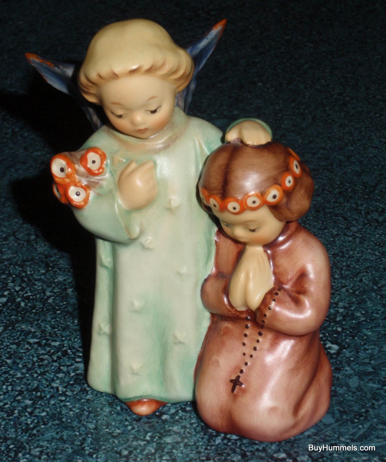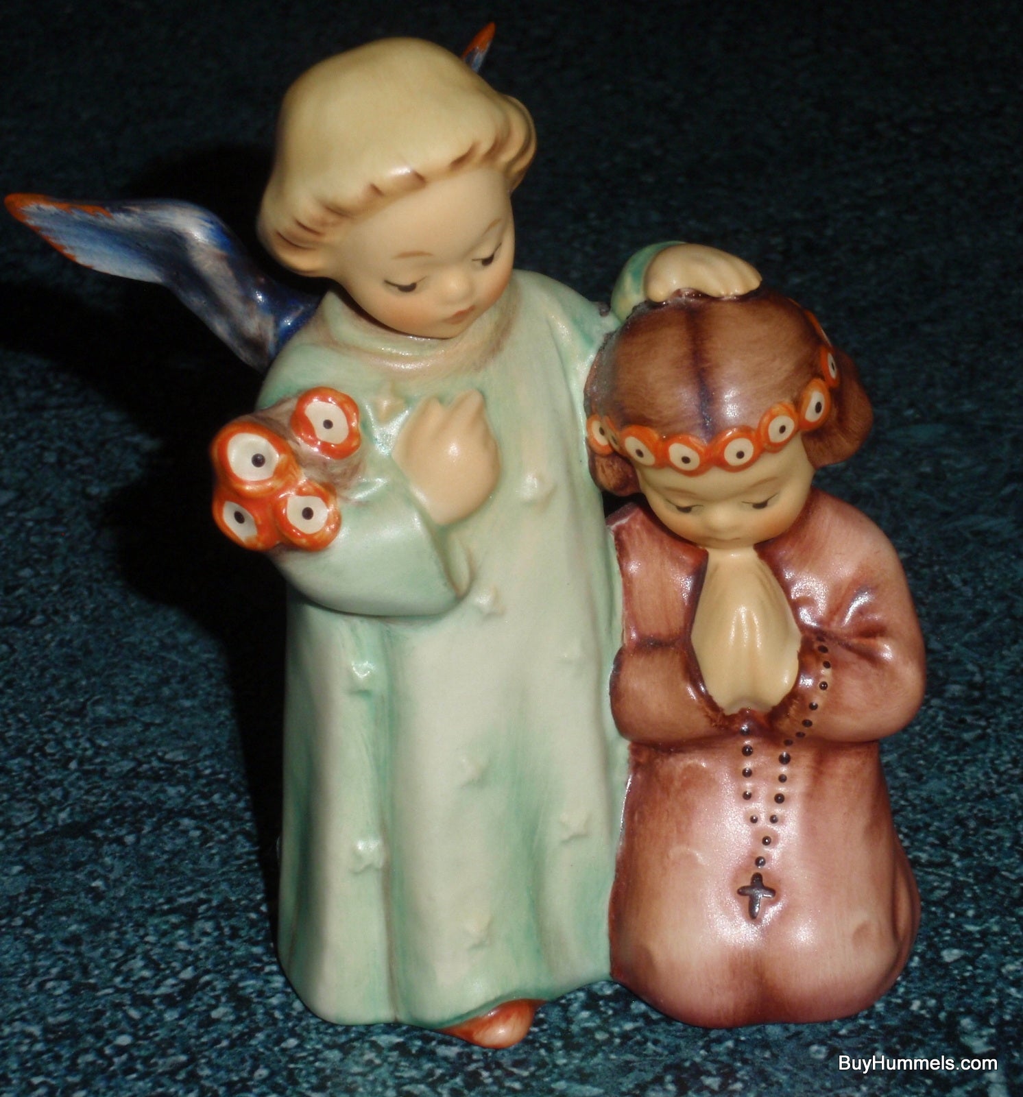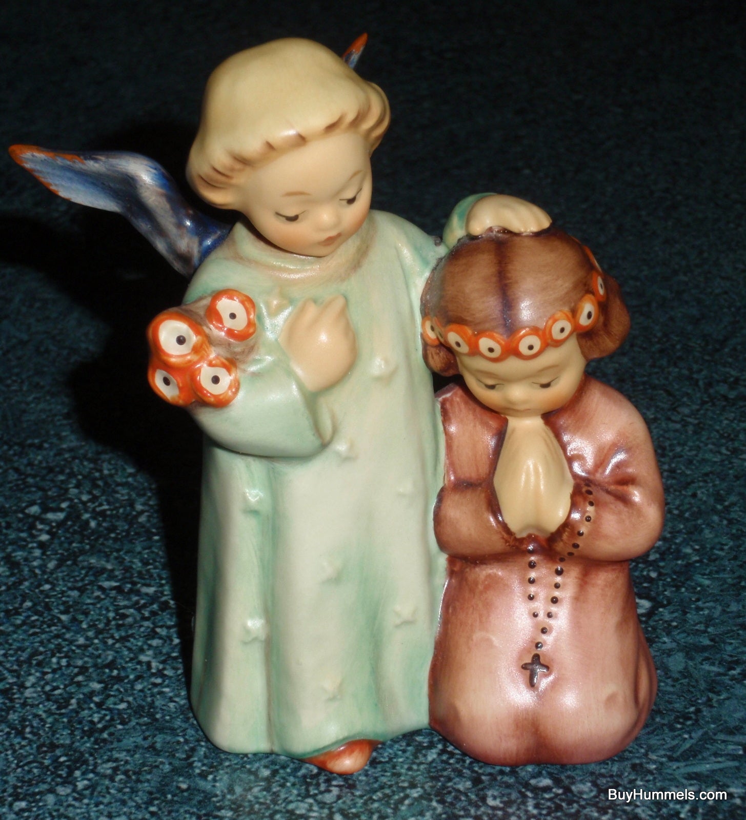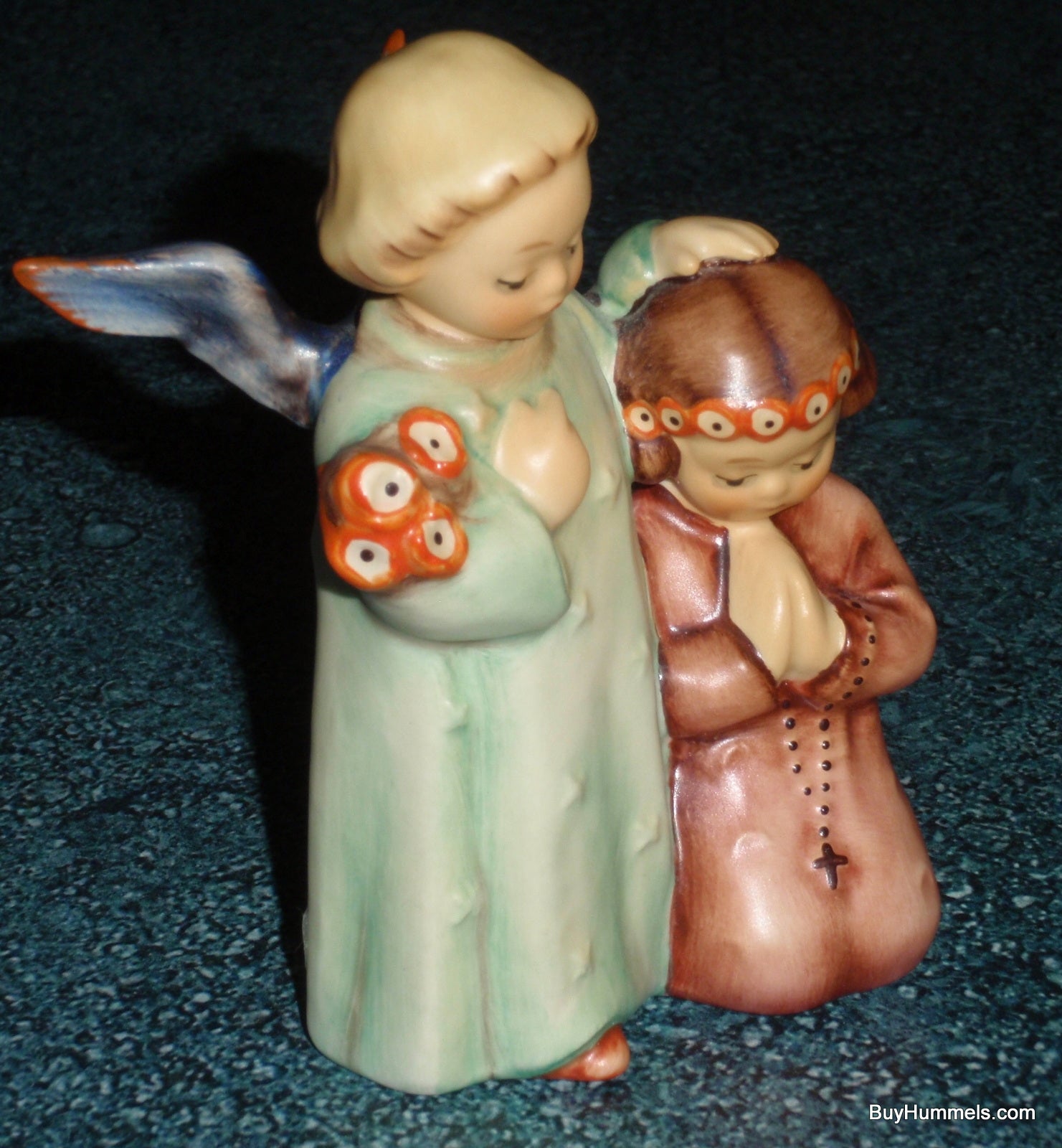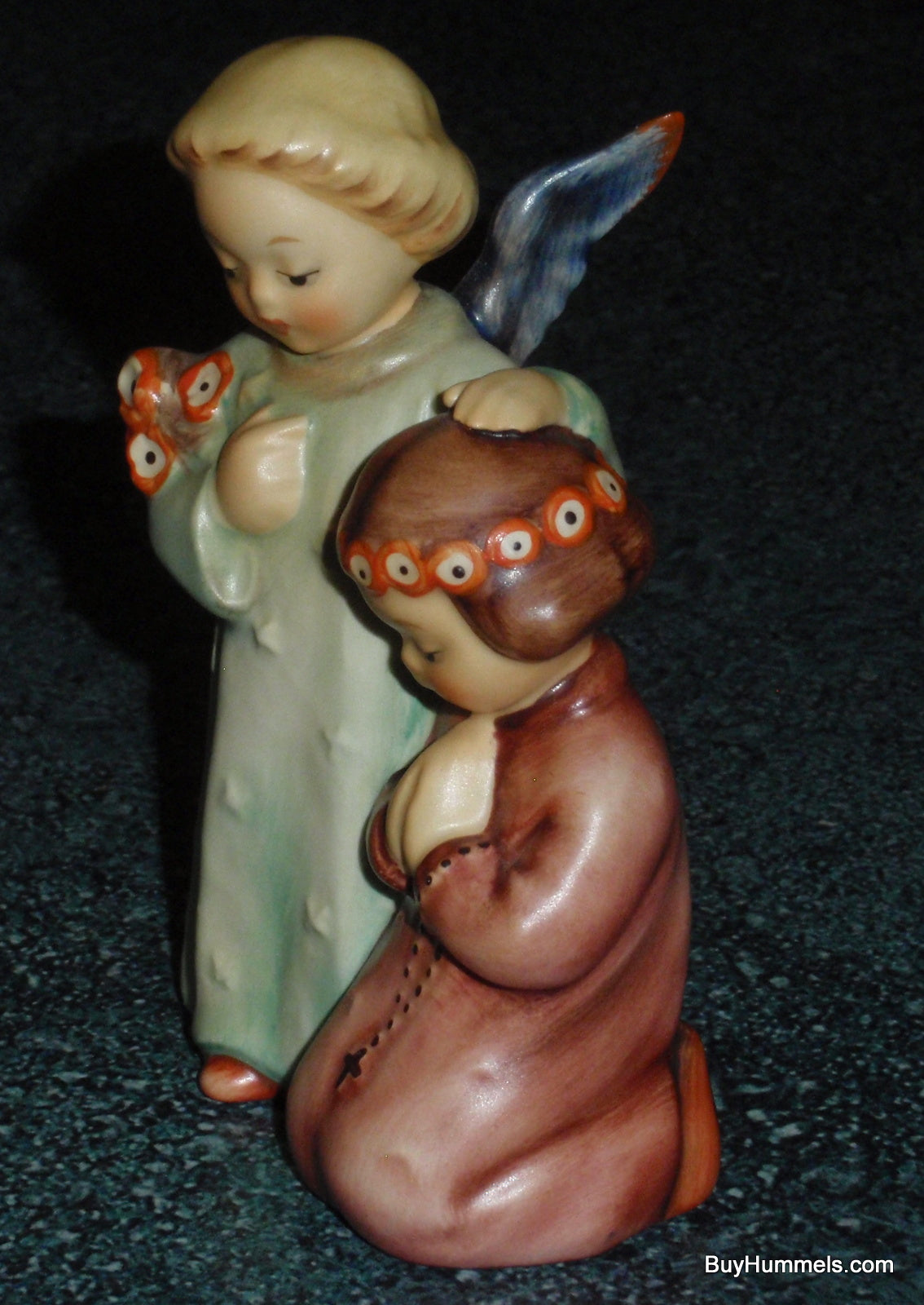 Now available at buyhummels.com: the endearing "Little Guardian" Goebel Hummel Angel Prayer Figurine #145! This charming figurine depicts a young girl in peaceful prayer with her guardian angel by her side. Measuring around 4" tall, this Goebel Hummel collectible is offered in EXCEPTIONAL condition, meticulously inspected to be free of any chips, cracks, or repairs. Ideal as a meaningful First Communion present or a wonderful enhancement to any Hummel enthusiast's collection.