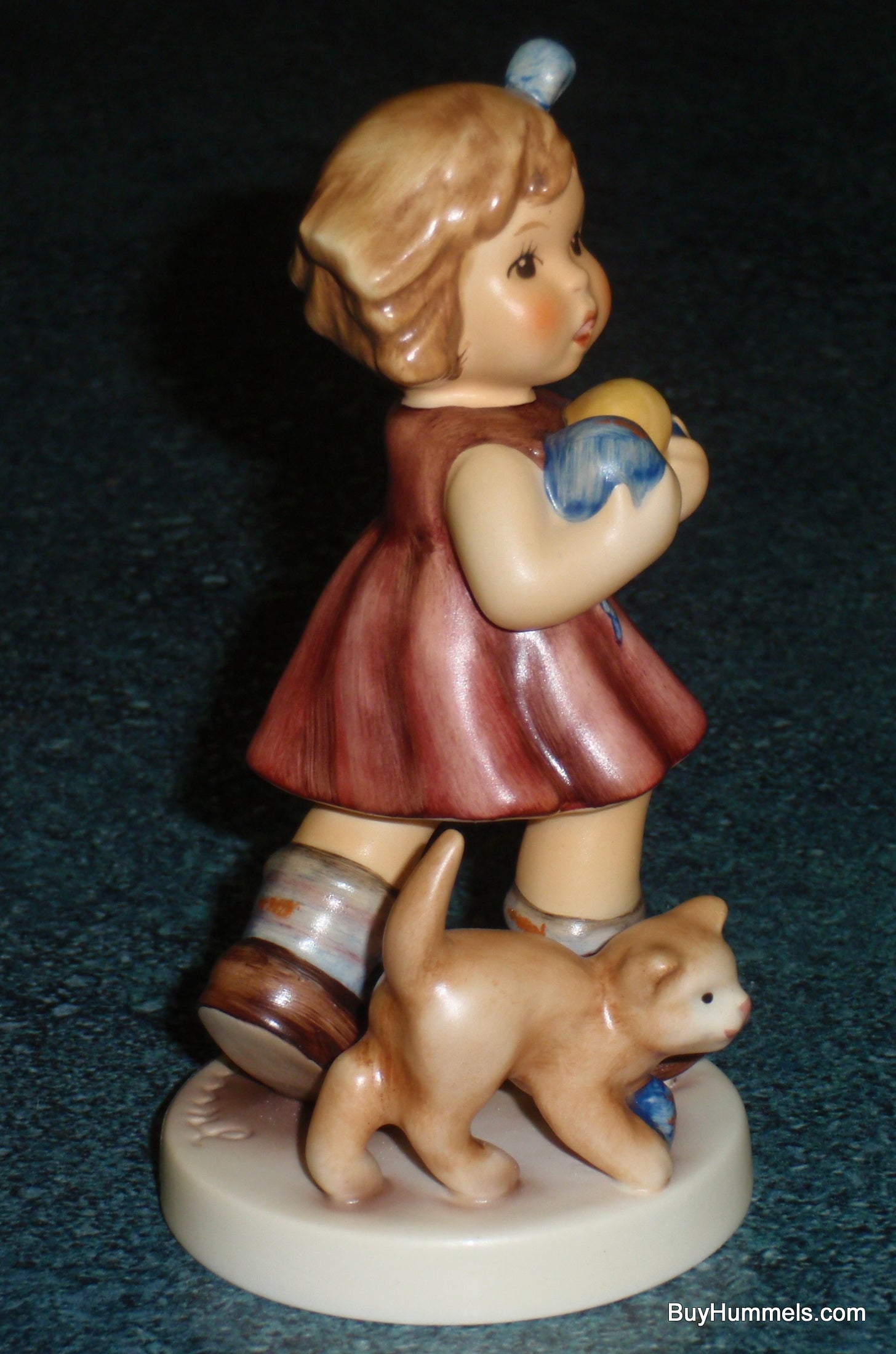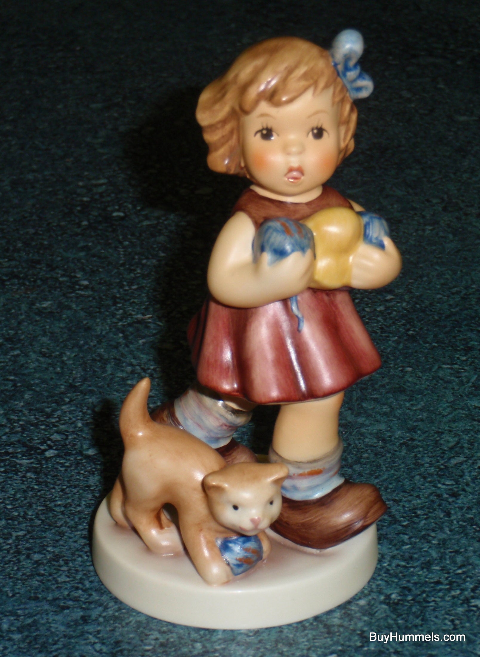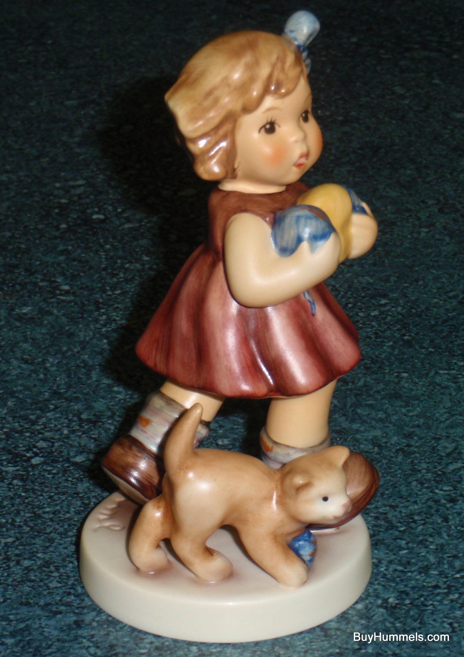 "Little Knitter" Goebel Hummel Figurine #2107/B Girl With Black Cat!