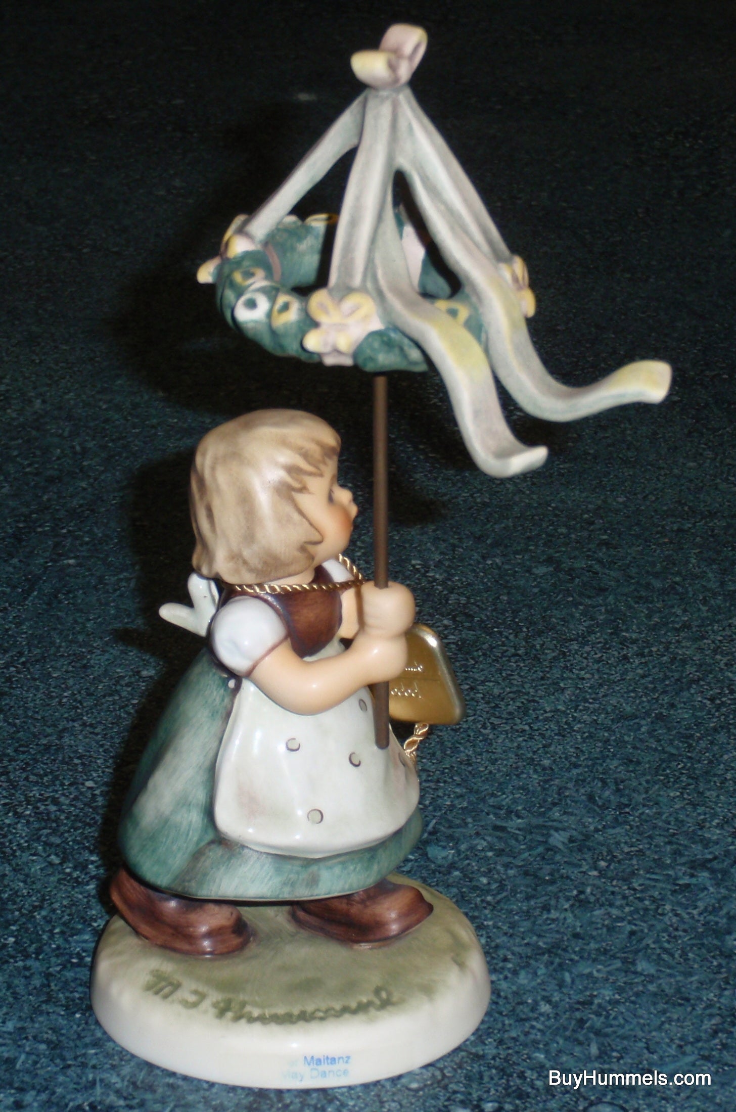 Welcome the arrival of spring with this delightful Goebel Hummel figurine, "May Dance" (Model #791). Sculpted by master modeler Helmut Fischer, this piece was released as a special Millennium Edition (Maifest 2000). It features a young girl dressed in traditional Bavarian attire, proudly holding a festive, flower-adorned Maypole (or umbrella staff) as she prepares for the celebration.