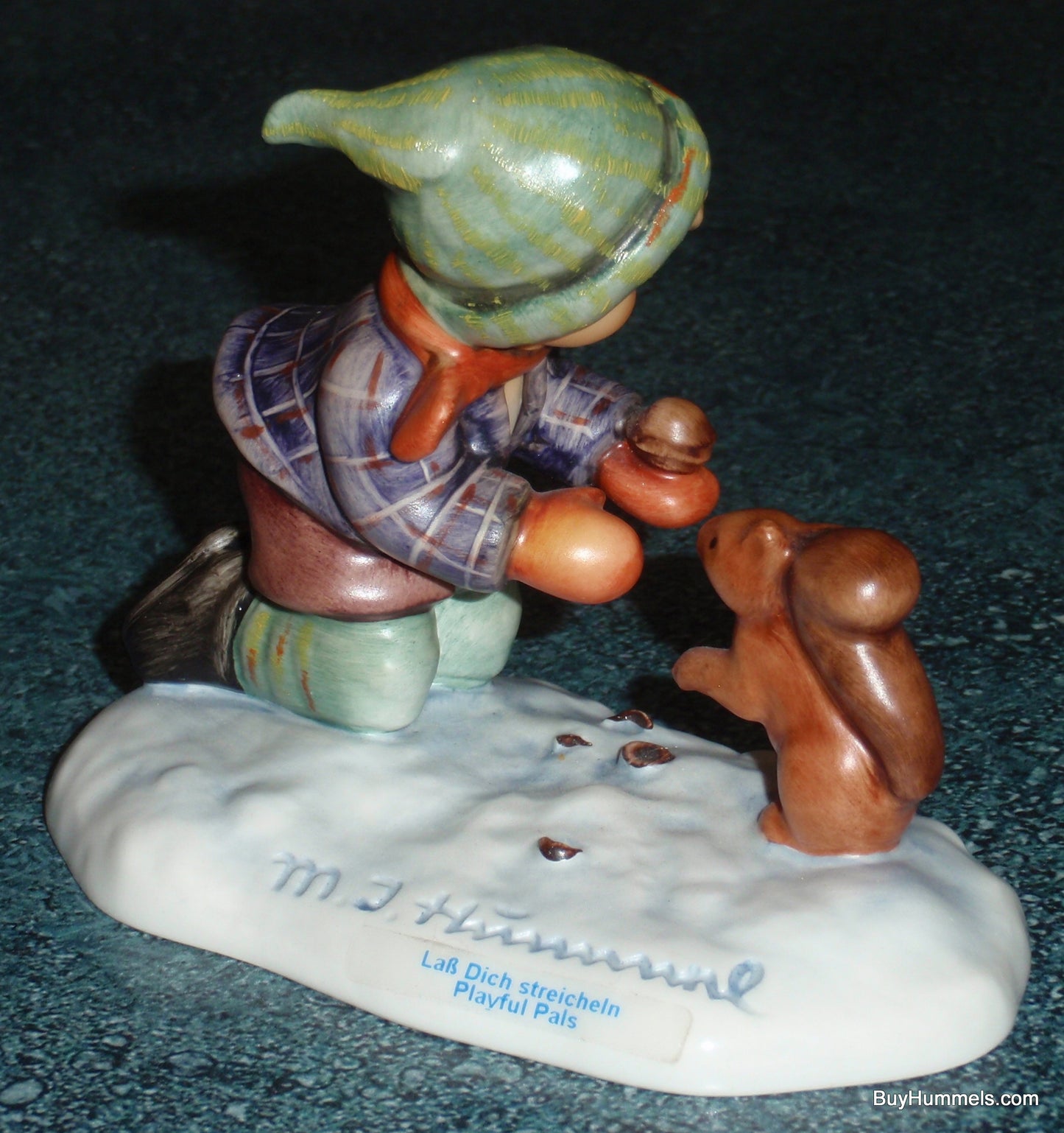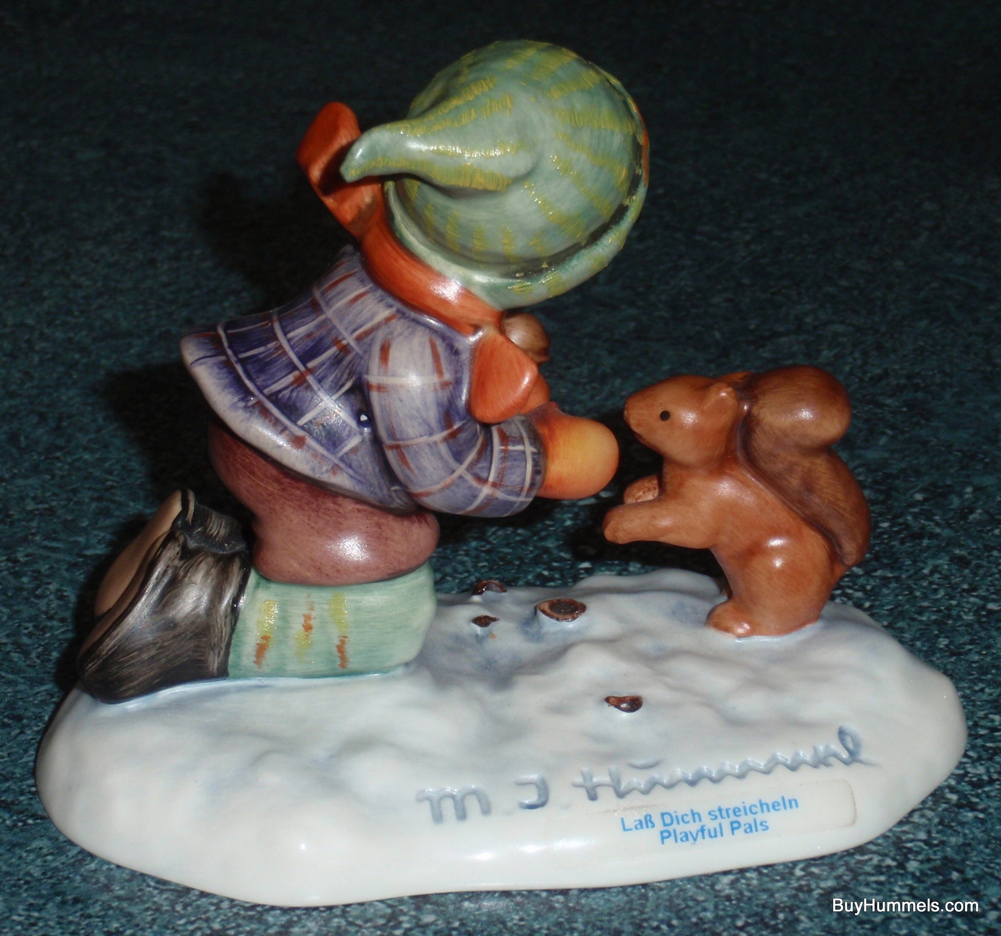 Up for sale is this LIMITED EDITION Playful Pals Hummel Figurine #2053!! This Hummel figurine features a young boy offering a but to a hungry squirrel in the wintertime. Super cute!!! As you can see in the pictures this Hummel is in EXCELLENT condition with no chips, cracks, or repairs! The colors are nice and vibrant and it displays beautifully! It is identified on the bottom as #2053 and is part of a limited edition of 25000! This Playful Pals stands 3-1/2" tall and would make a great addition to any Hummel collection! Don't forget, Hummel figurines like this one are no longer being produced so get them while they last!