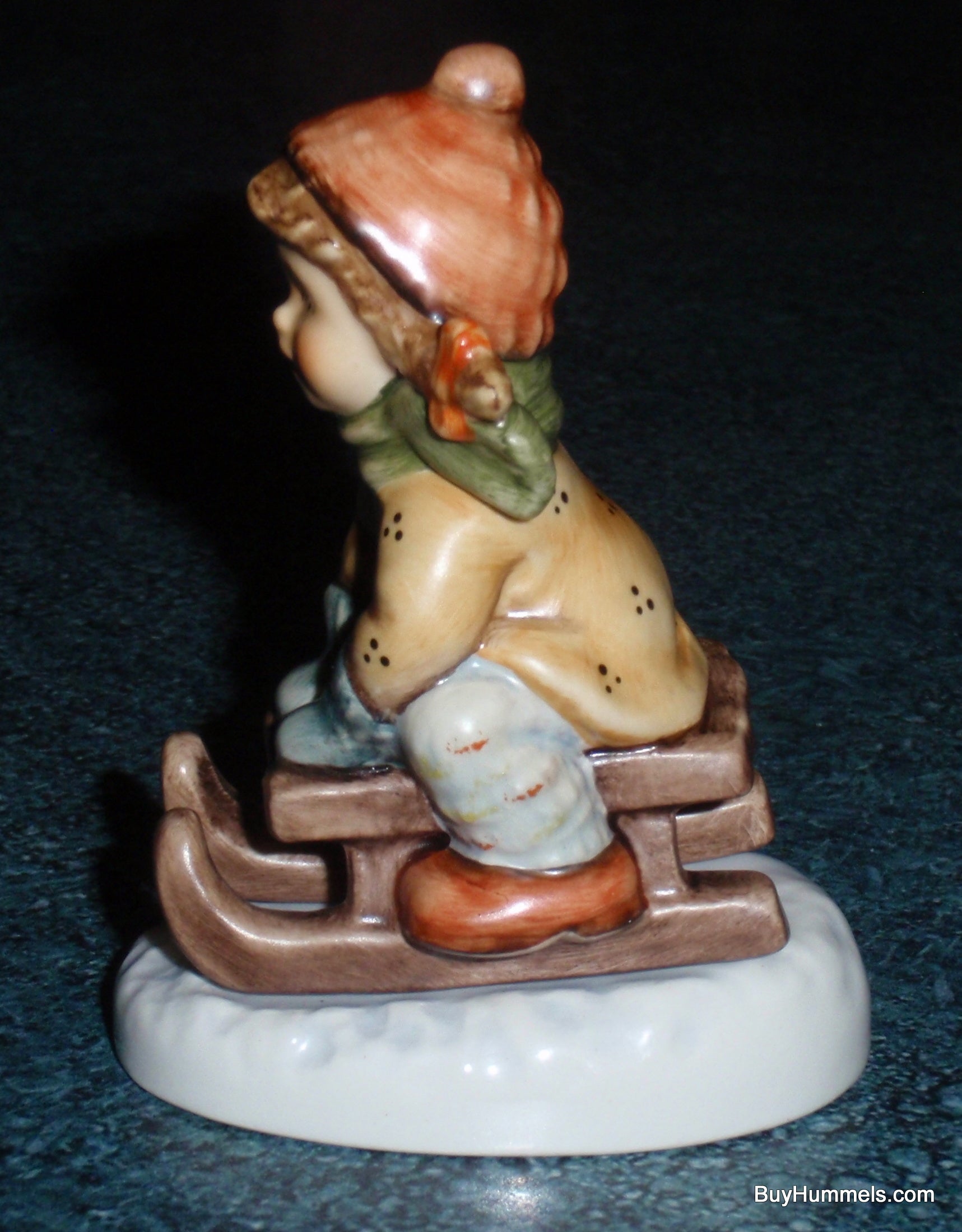 Bring a gorgeous touch of youth and snowy fun to your display with this spectacular fine porcelain Goebel Hummel figurine, "Sleigh Ride" (Model #2236). Hand-painted in Germany, this delightful holiday collectible features a sweet young girl bundled up for the cold as she happily rides her wooden sled on a beautiful winter day!