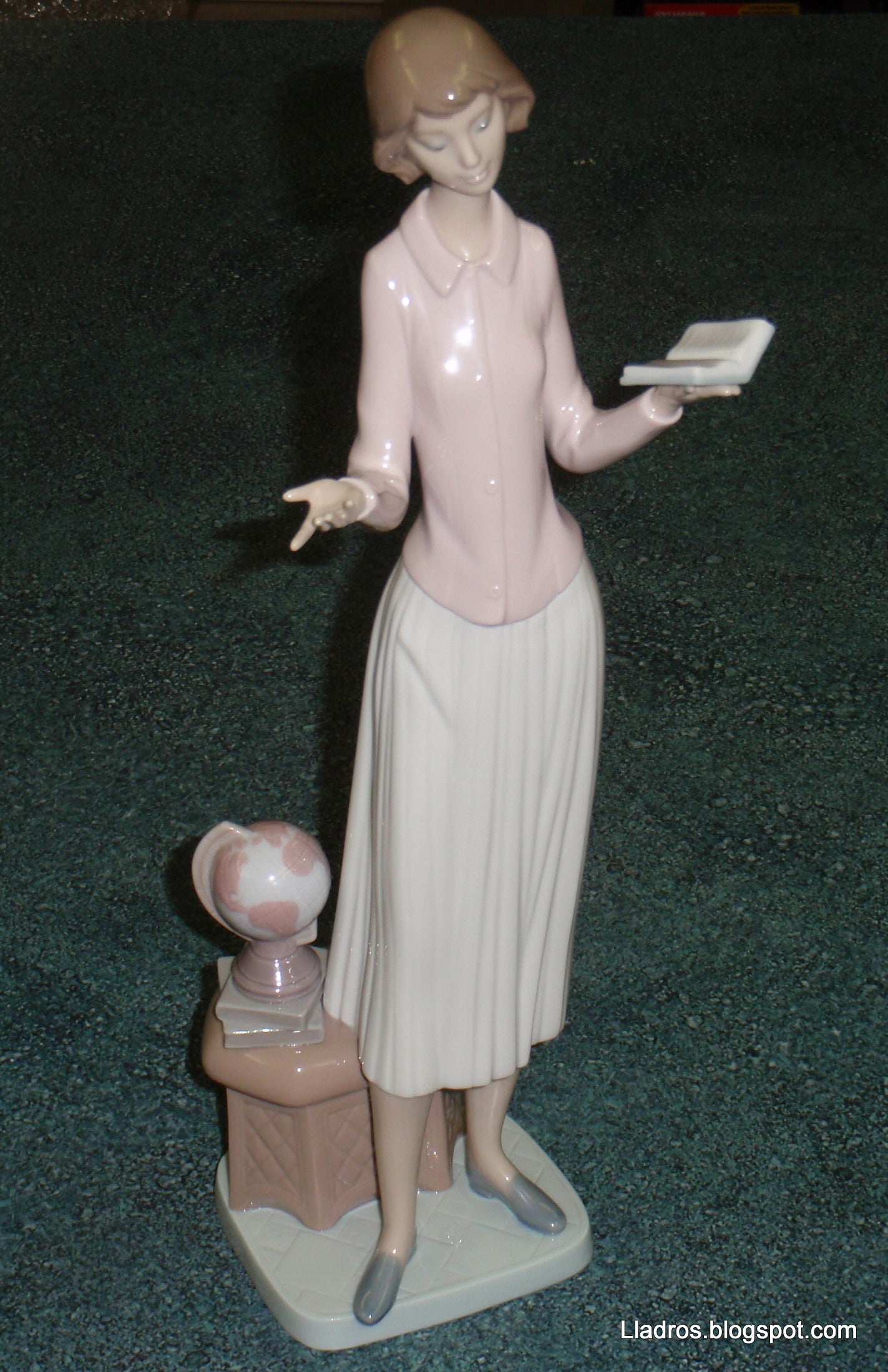 Celebrate the noble profession of teaching with this graceful Lladro porcelain figurine, "Today's Lesson" (Model #6659). Sculpted by the talented Jose Javier Malavia, this piece depicts a young, poised teacher holding an open book, with a globe standing ready by her side—perfectly capturing the dedication of an educator.