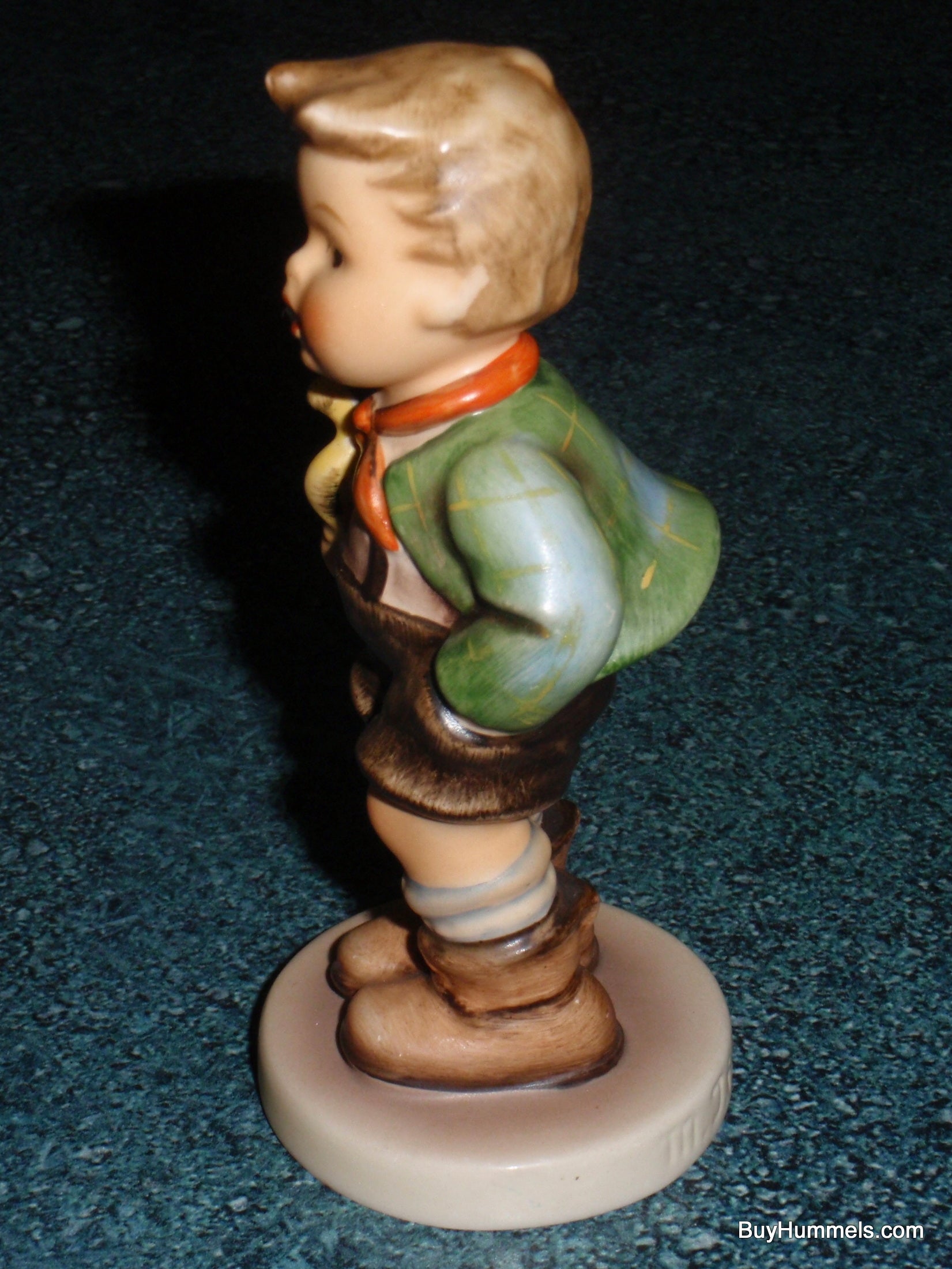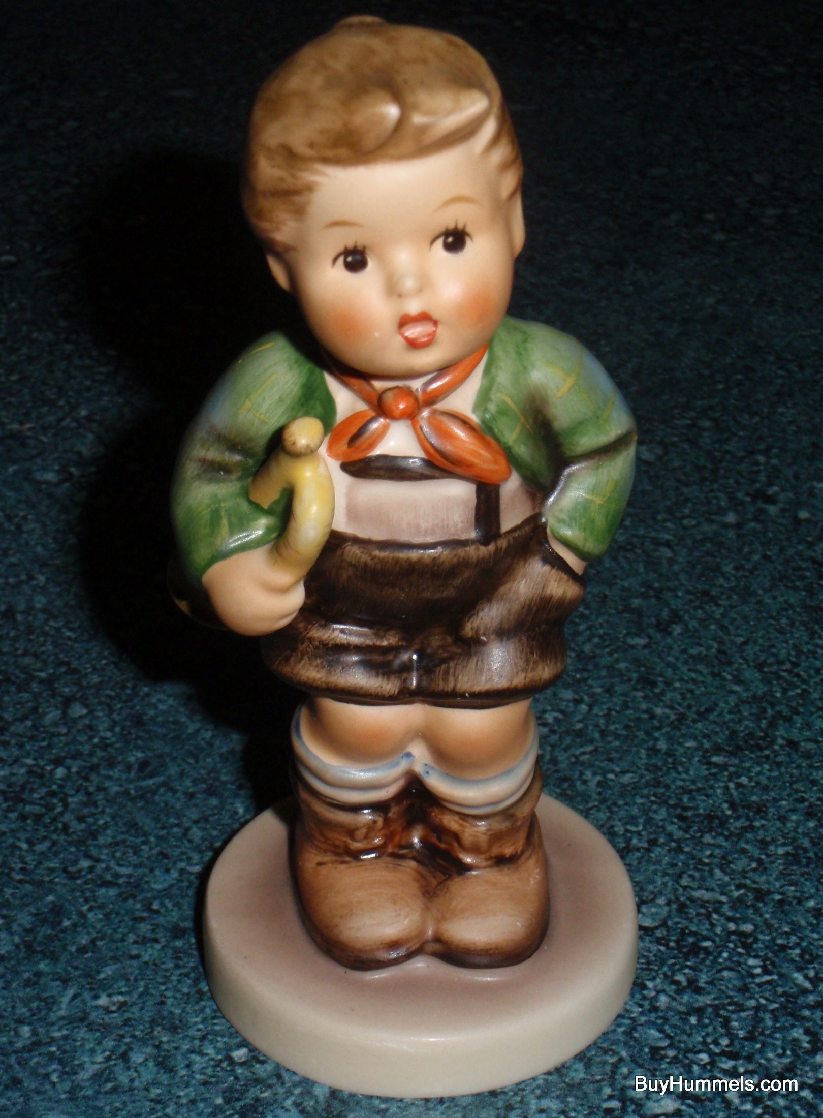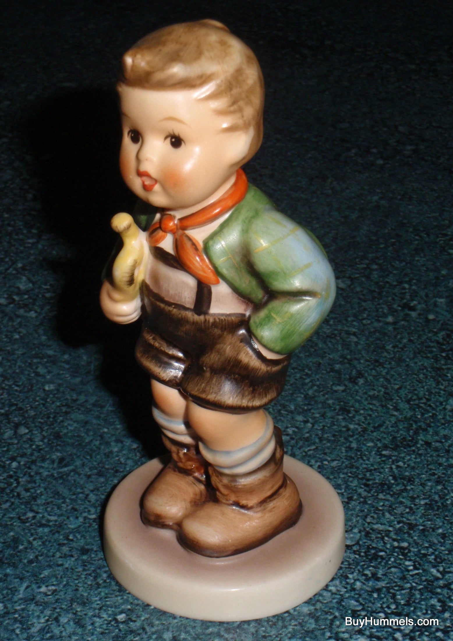 The next Hummel from our collection is this hard-to-find vintage Trumpet Boy Goebel Figurine #97. This figurine stands approximately 4-3/4" tall x 2" wide. It features a young boy with a trumpet in his arm awaiting his recital. Very cute!!