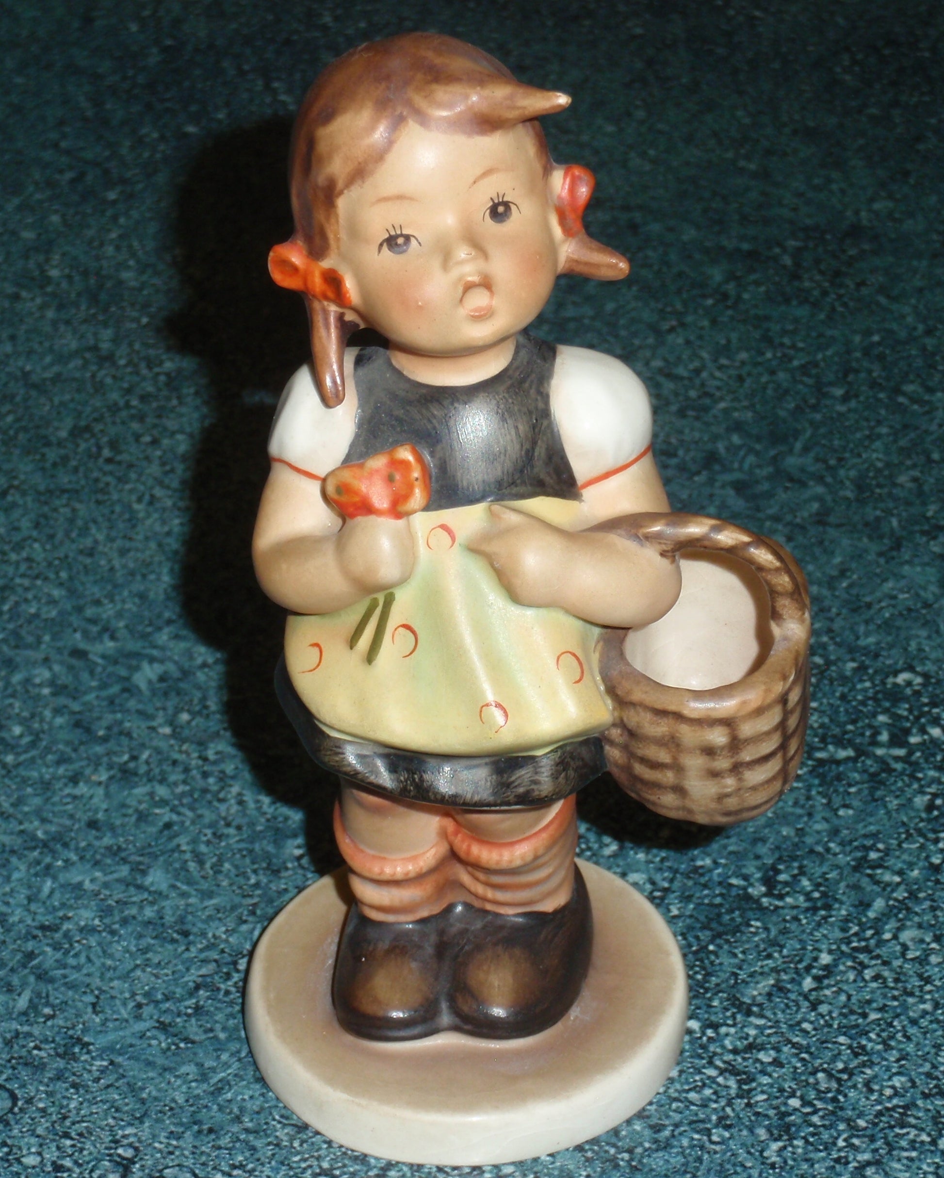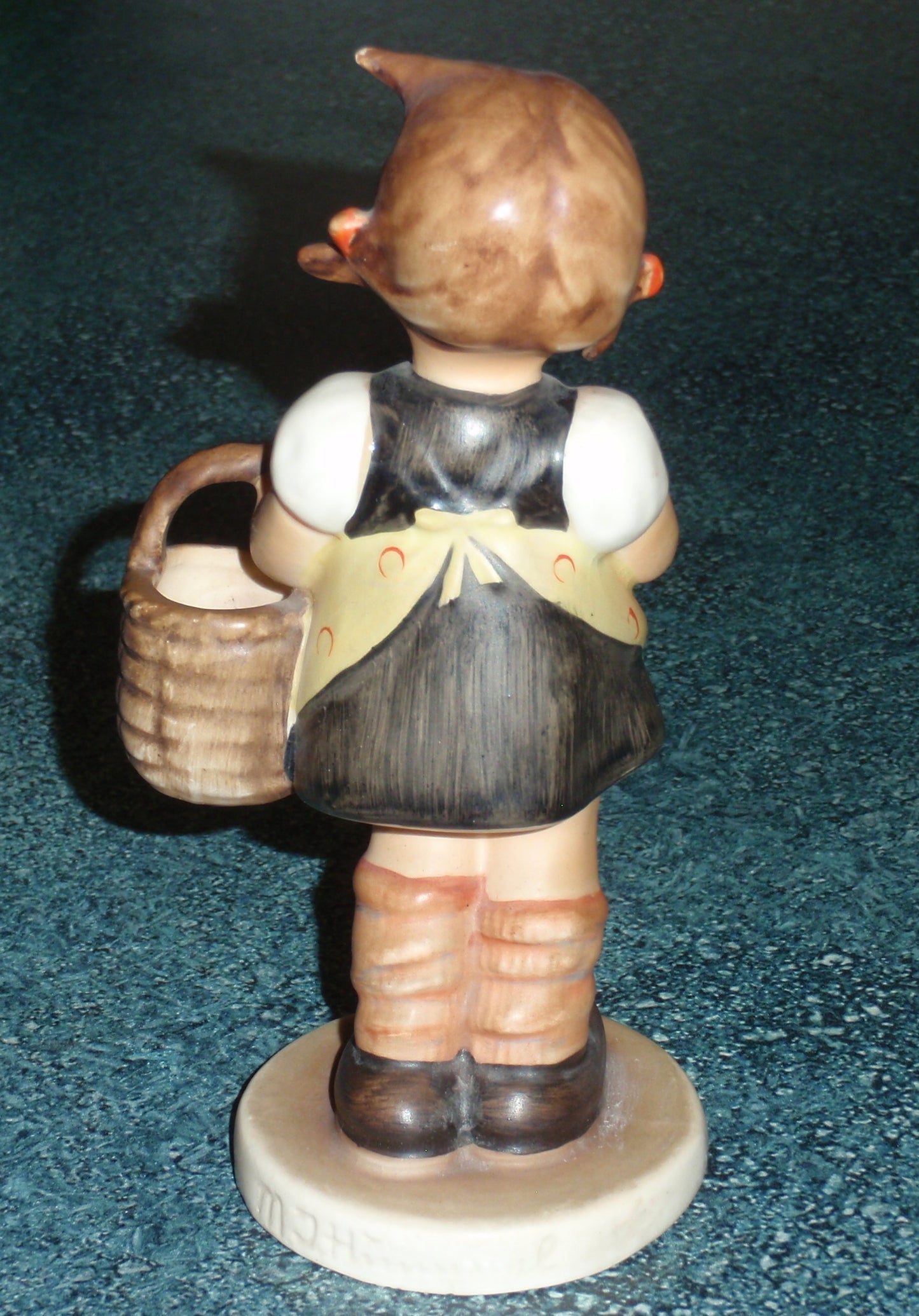 We are thrilled to offer this truly ULTRA RARE "Sister" Hummel figurine, identified as model #98. This delightful piece depicts a sweet young girl holding flowers and carrying a basket. What makes this Hummel particularly special is the presence of the TMK1 INCISED CROWN trademark. This early mark firmly places its production in the initial years of Goebel Hummel figurines, between 1935 and 1949, making it a highly sought-after antique. This is the impressive LARGE size, standing approximately 5-1/2" tall, and it presents beautifully in EXCELLENT condition. As shown in the detailed photographs, it is free from any chips, cracks, or repairs and retains its lovely, vibrant coloration. With Hummel production ceased, acquiring such early and well-preserved pieces is a rare opportunity. Add this significant "Sister" figurine to your collection today!