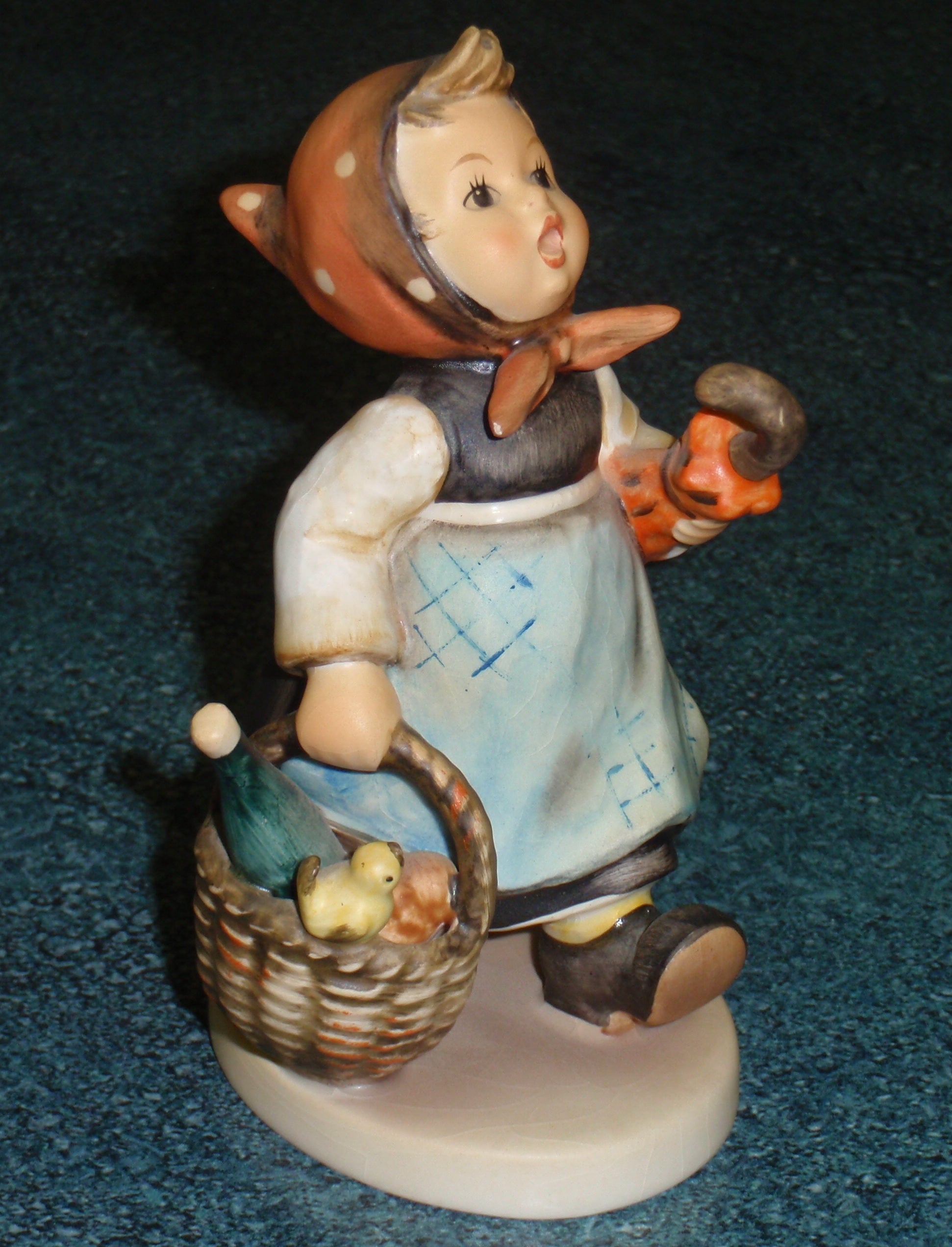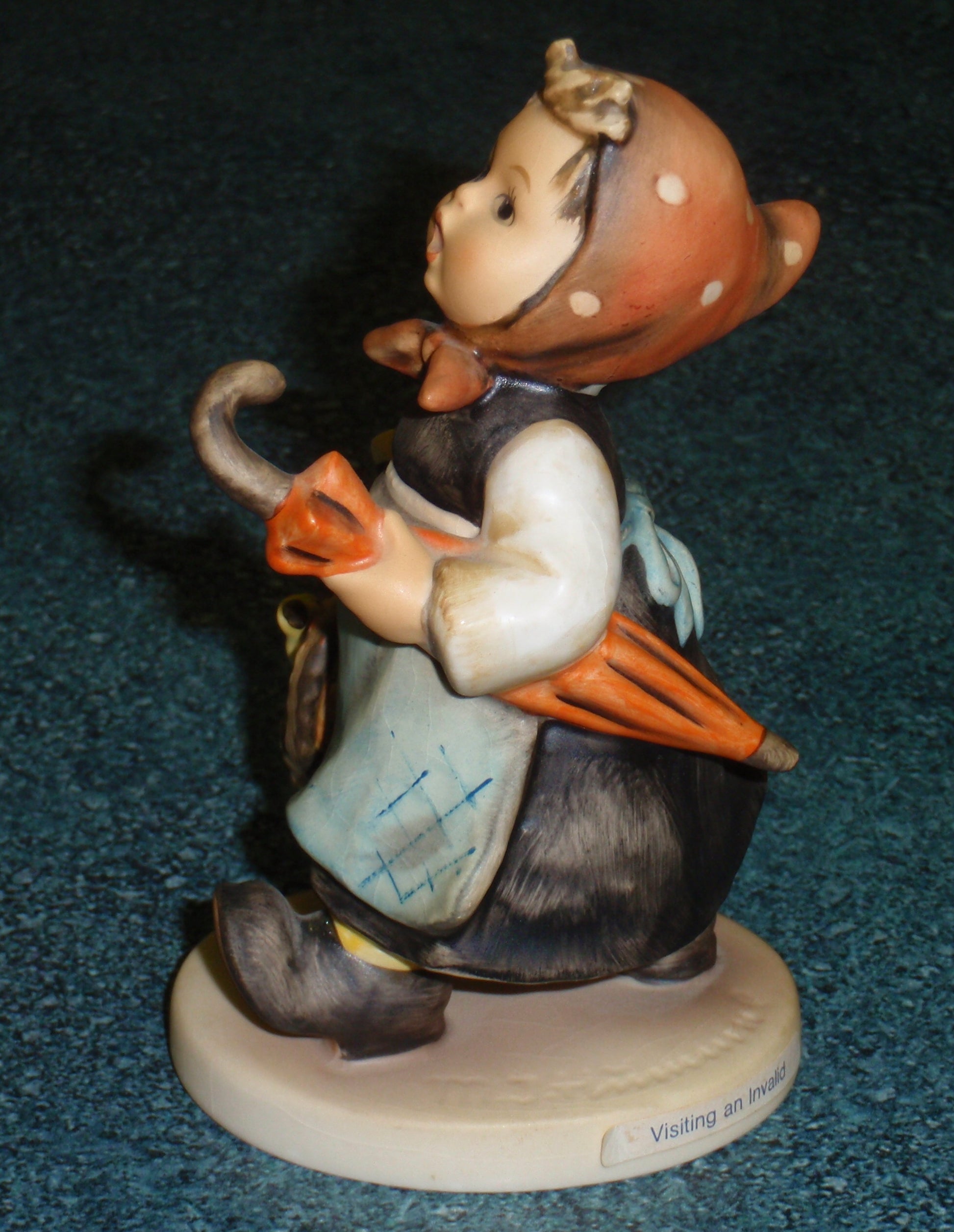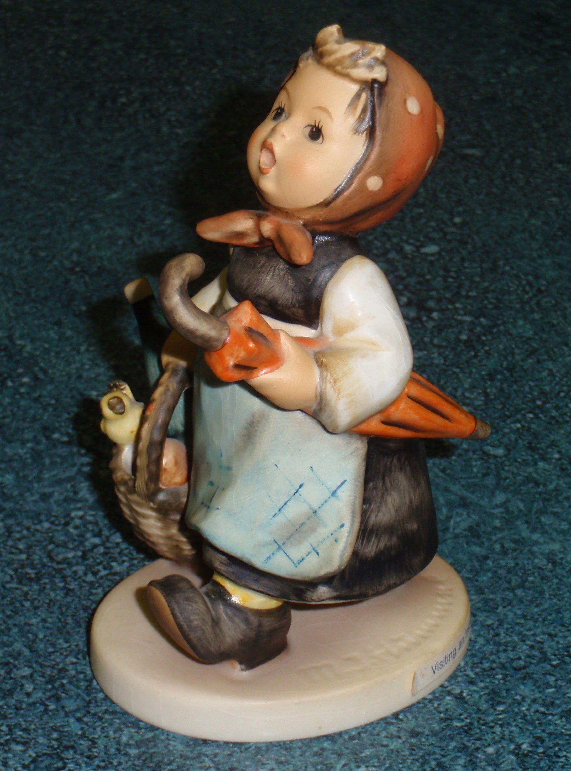Up for sale is this hard-to-find HUMMEL FIGURINE #382 "Visiting An Invalid"! This adorable Hummel features a young girl in a dress with an umbrella in one arm and a basket with wine, bread, and a songbird perched on top. SUPER CUTE!!! This Hummel is in EXCELLENT condition with no chips, cracks, or repairs! Still displays beautifully after all these years! It is identified on the bottom as #32! The colors on this Hummel are still nice and vibrant, it would make a fantastic display piece. Remember Hummels like this are no longer being produced and will only go up in value as they become harder and harder to find!
