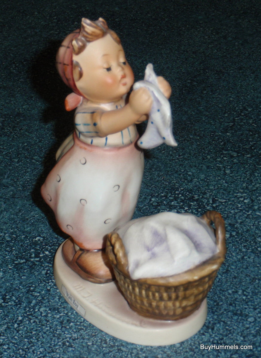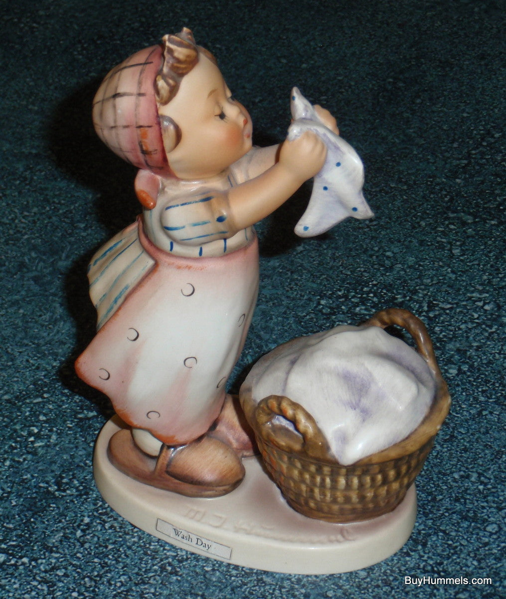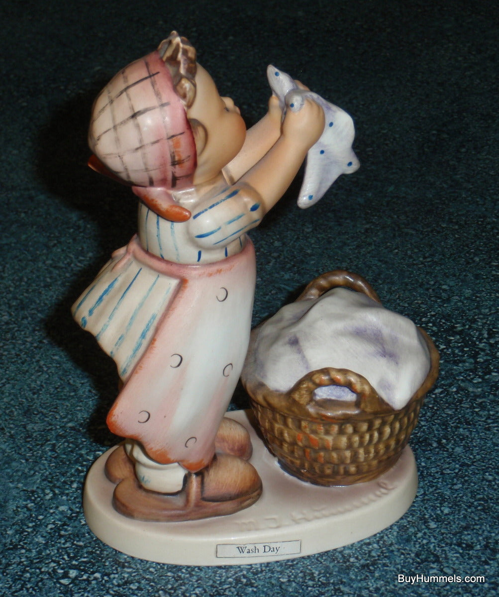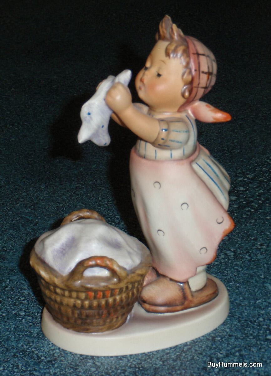 The next Hummel Figurine from our collection is entitled "Wash Day" and is identified as #321. This Hummel features a young girl folding her laundry for her mother. This is the larger version measuring 5-3/4" tall and is in EXCELLENT condition as you can see in the pictures with no chips, cracks or repairs! The colors are nice and vibrant! Remember Hummels are no longer being produced and will only go up in value as they become harder and harder to find!