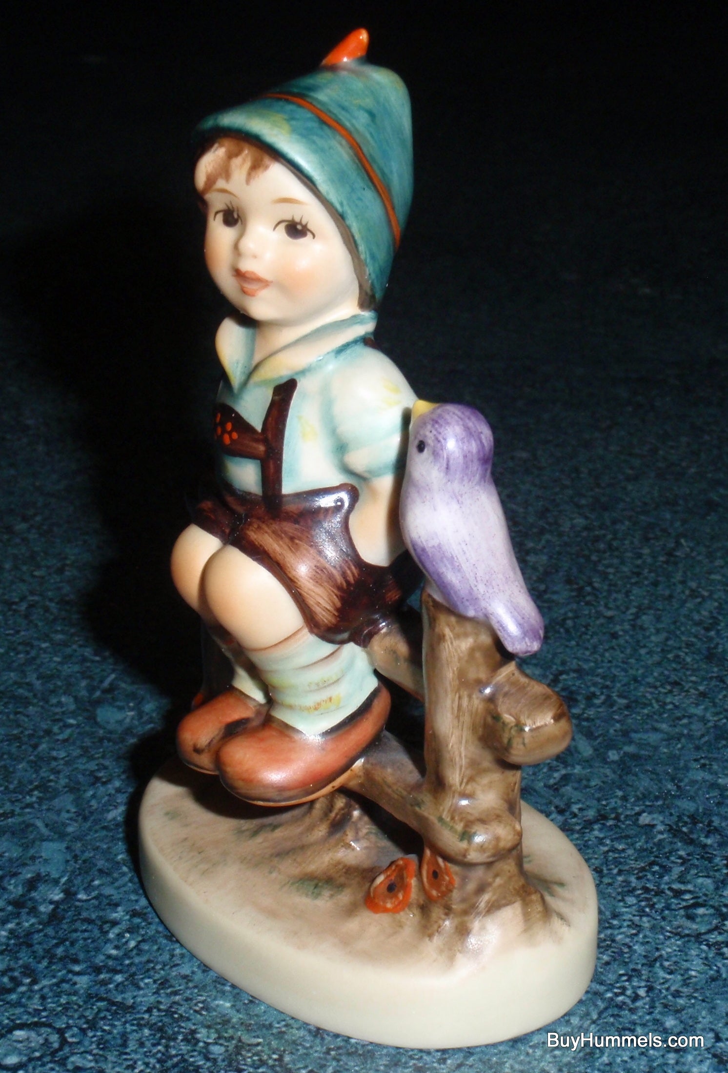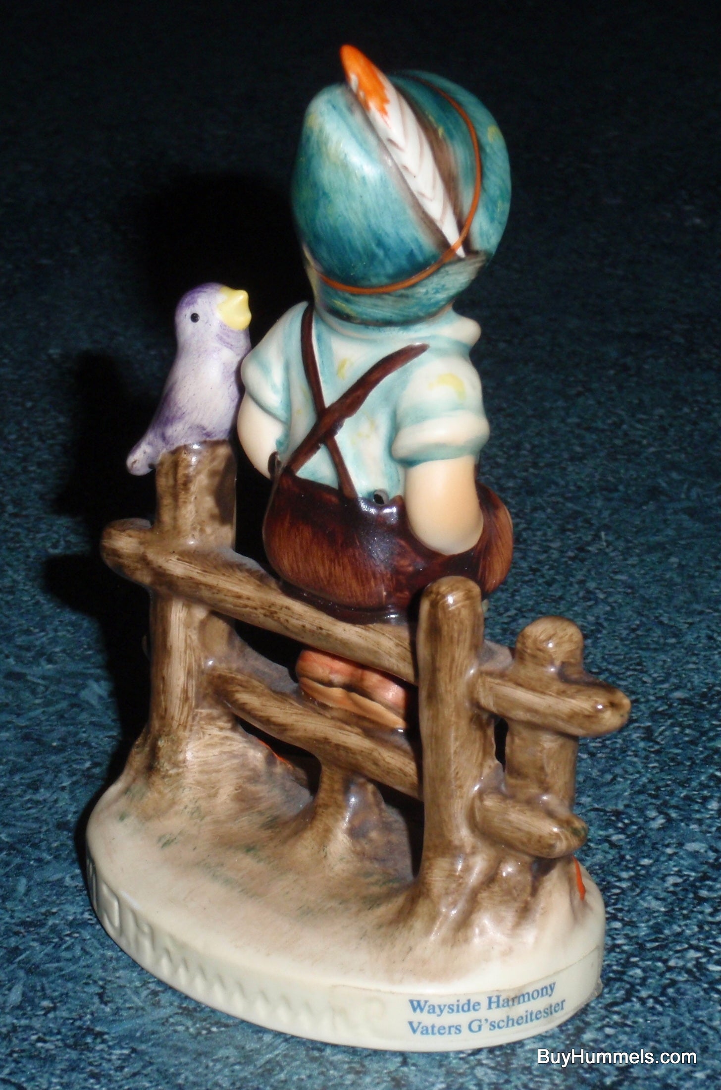 Discover the timeless beauty of the "Wayside Harmony" Hummel Figurine #111 3/0. This authentic Goebel Hummel depicts a charming scene of a young boy sitting on a wooden fence, accompanied by a lovely purple songbird. This collectible Hummel figurine, approximately 4 inches tall, is a must-have for any Hummel enthusiast. In excellent, undamaged condition, this piece showcases the intricate details and vibrant colors that make Hummel figurines so beloved. Perfect for display or as a cherished gift. Find Hummel #111 3/0 and other rare Hummel figurines at buyhummels.com.